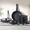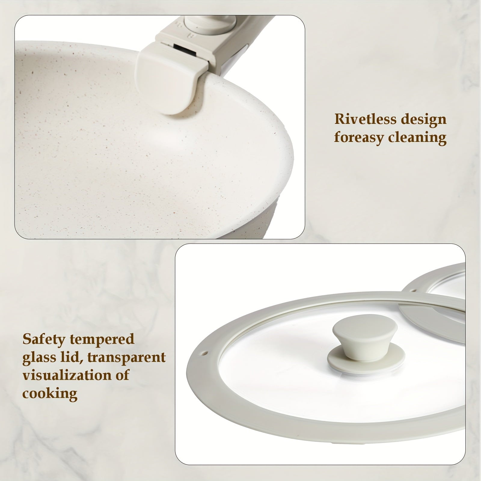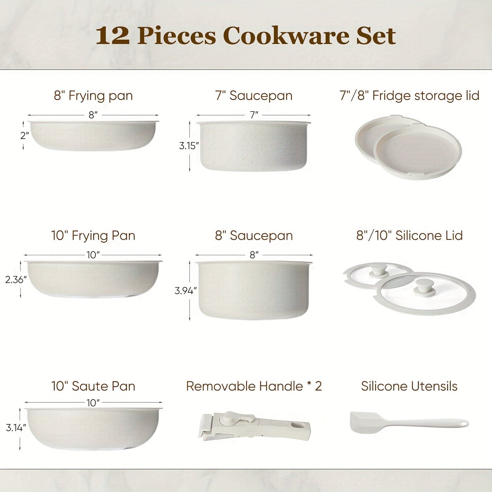 12pc White Granite Nonstick Cookware Set – Induction Compatible Pots/Pans with Removable Handles, Easy-Clean Kitchen Essentials