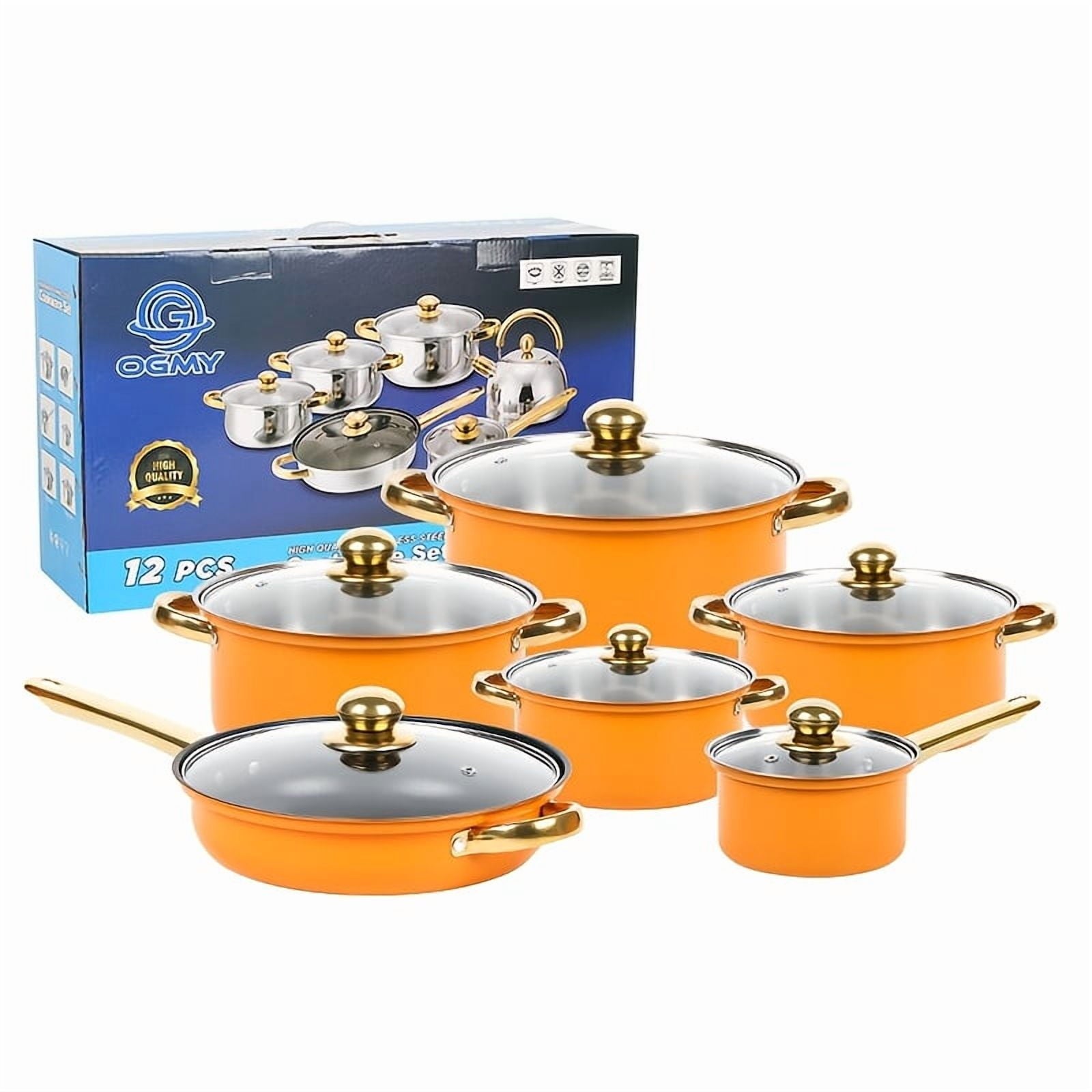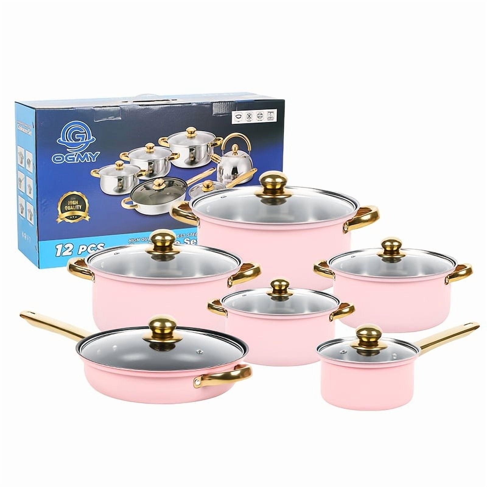 12pcs Stainless Steel Cookware Set, Pot Set Non-stick, Kitchen Supplies Orange Pink Cookware Set, Pot Set, Cookware Set, Non-toxic Cookware Set, Non-stick Cookware Set, Oven Dishwasher Safe