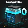 Our Lithium Ion Phosphate (LiFePO4) battery can be recycled up to 4000~15000 times and provide up to 10 years of service life. Because of its safety and stability, LiFePO4 battery can perfectly replace the traditional lead acid battery. This battery uses prismatic LiFePO4 cells with better stability, higher energy density, and lighter weight, making the batteries good enough at high temperature performance, high power output, low self-discharge rate.Our battery possesses industry-leading technology and is manufactured with advanced technology in the industry. It has excellent and reliable performance with sufficient battery capacity, supporting battery expansion for up to 4 series & 4 parallel and suitable for electric energy storage.The battery have high energy density, which makes it possible to ensure long-term recycling. Can be repeatedly charged and discharged without any memory effect.