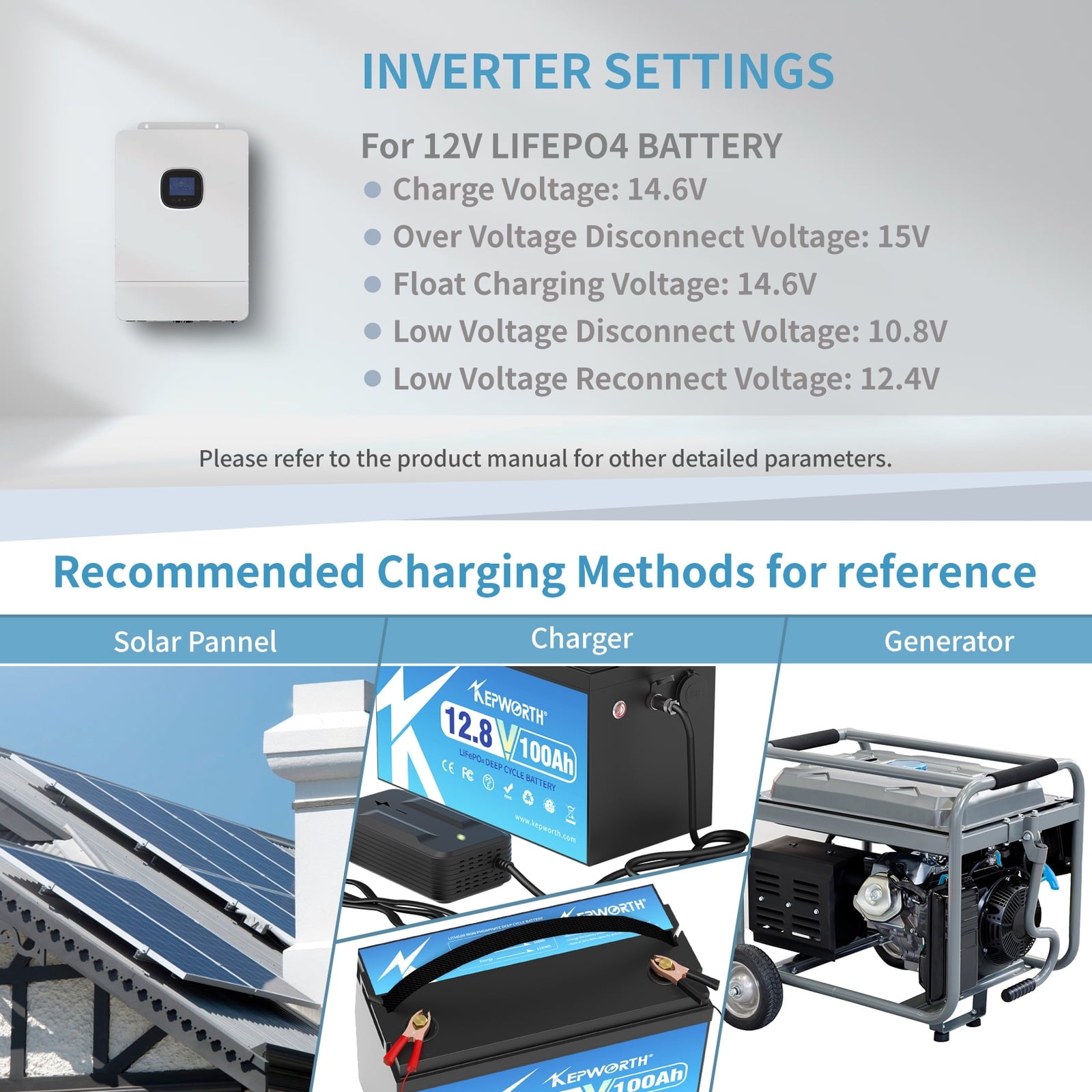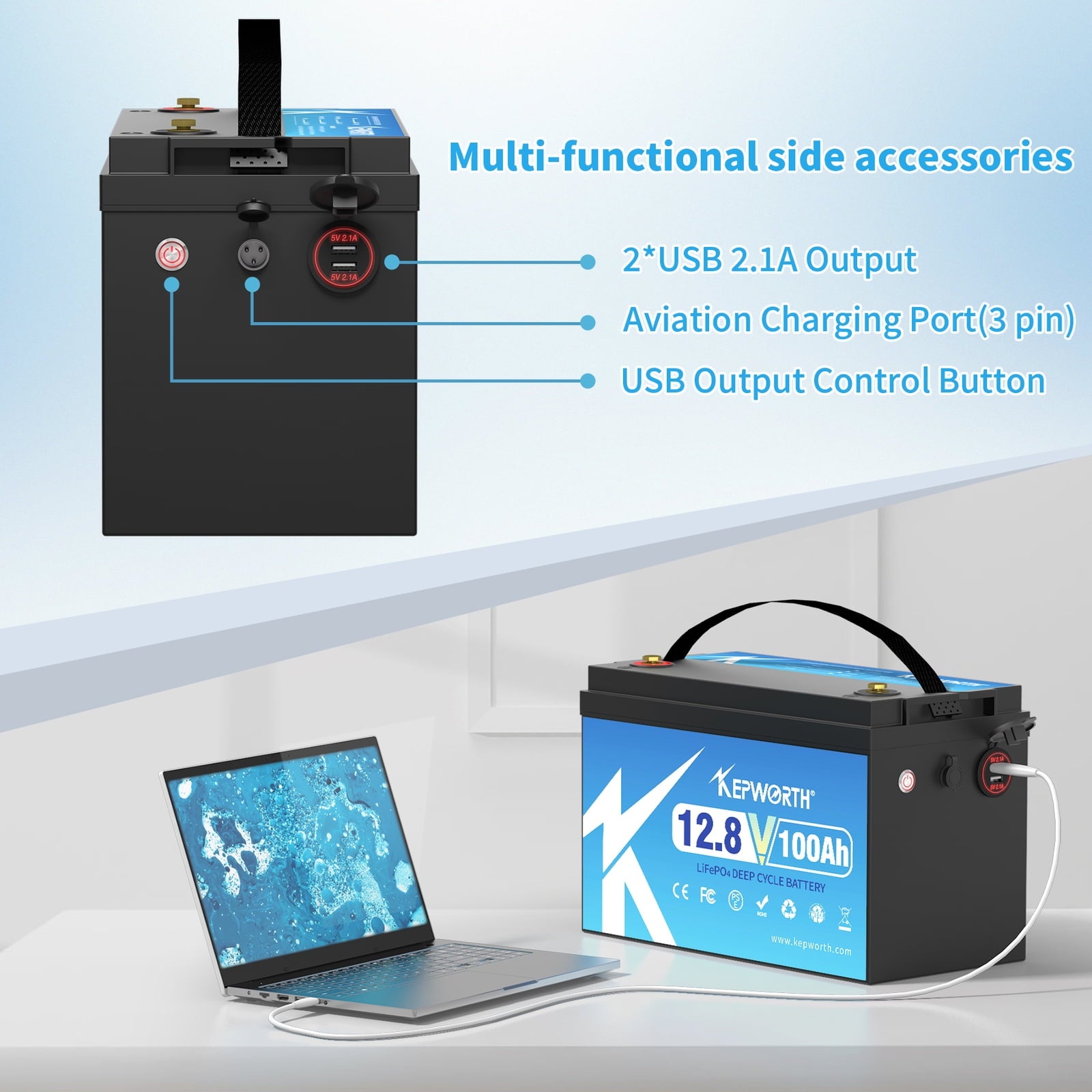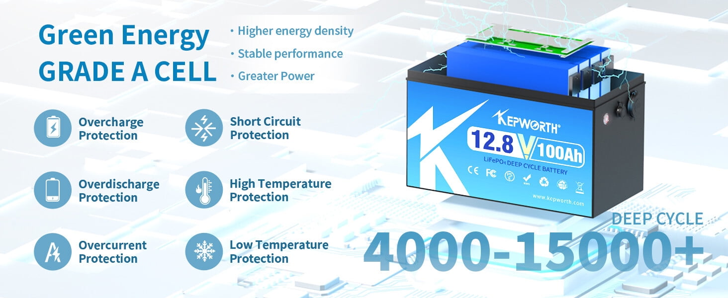 High Capacity: The KEPWORTH 12V 100AH LiFePO4 Battery offers an impressive capacity,