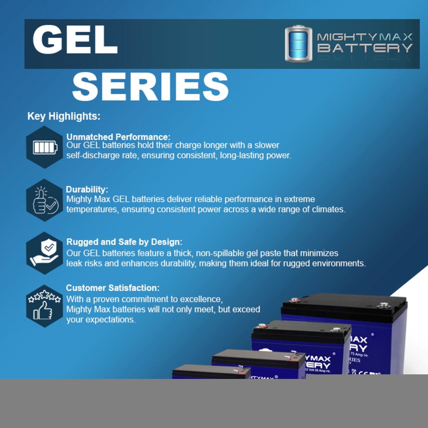 • Trusted by our customers: Mighty Max has earned a solid reputation for quality and reliability, making it a brand people trust. Experience the benefits of advanced GEL technology for superior discharge capabilities, enhanced safety, better performance, and longer lifespan