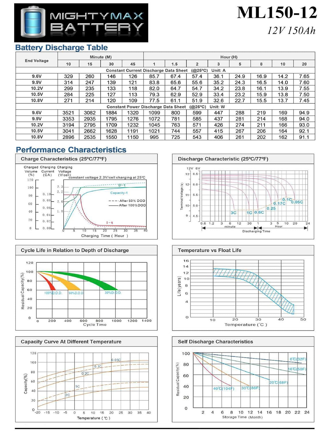 Delivering power when you need it, the Mighty Max ML150-12 12 Volt 150 AH uses a state of the art, heavy-duty, calcium-alloy grid that provides exceptional performance and service life in both float and cyclic applications.