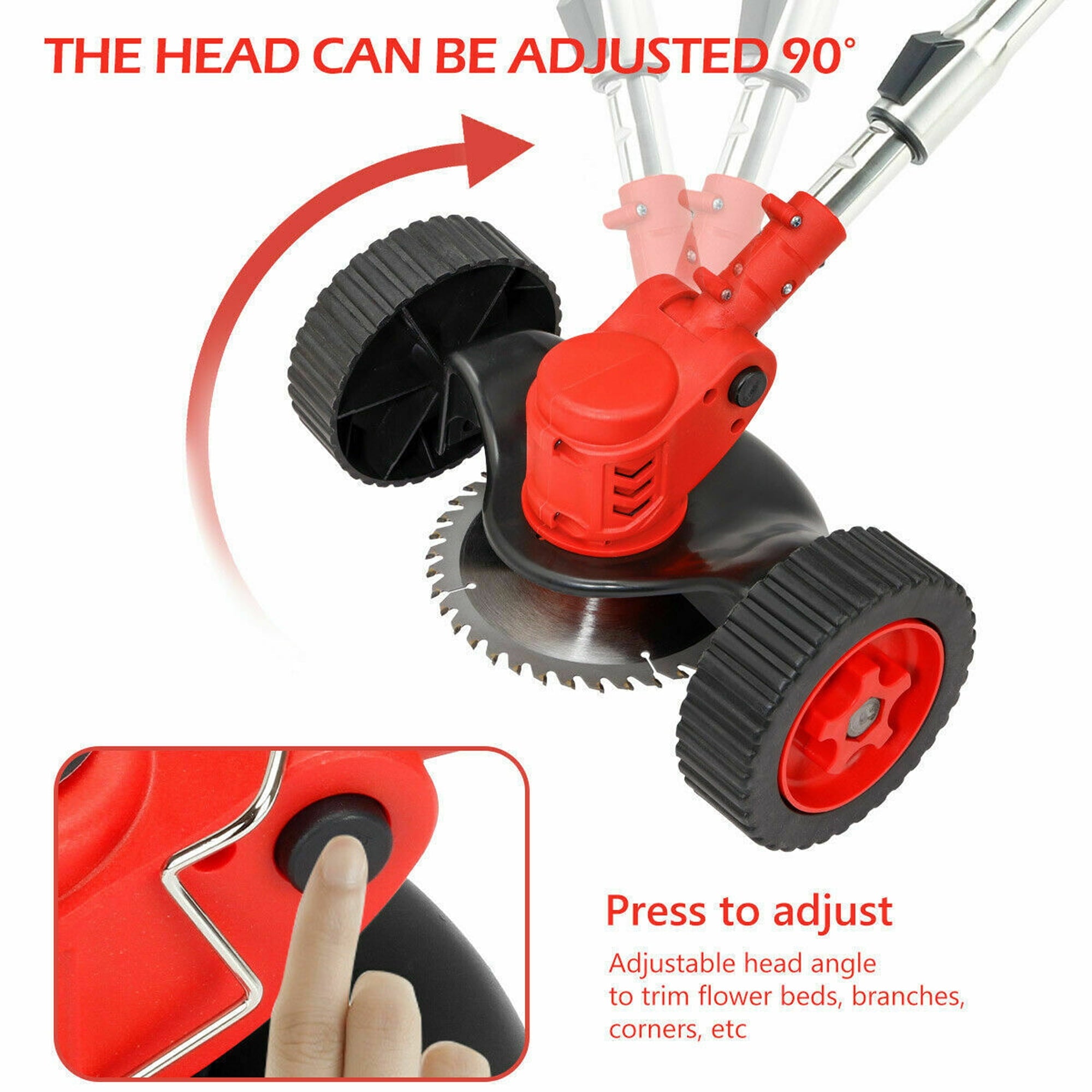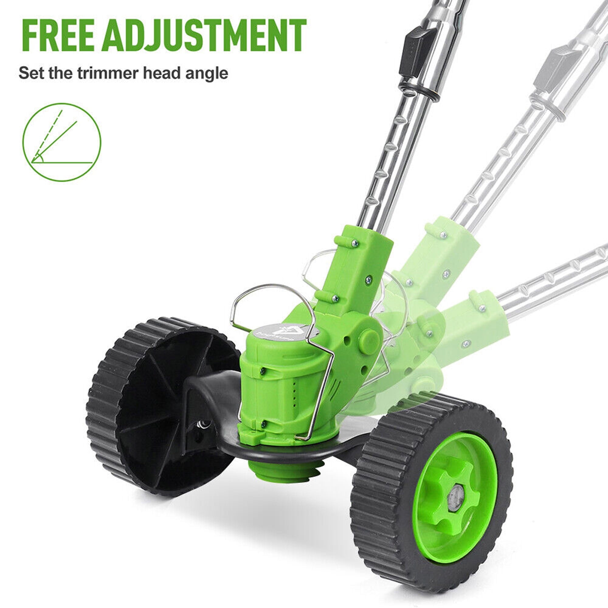 The grass trimmer is freely adjustable in length and trimmer head, adjust to the right angle and start your yard work.