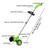 An all-in-one cordless push lawn mower, trimmer and edger. Easily converts from weed eater to wheeled Lawn Mower. Make your lawn the envy of the neighborhood.
