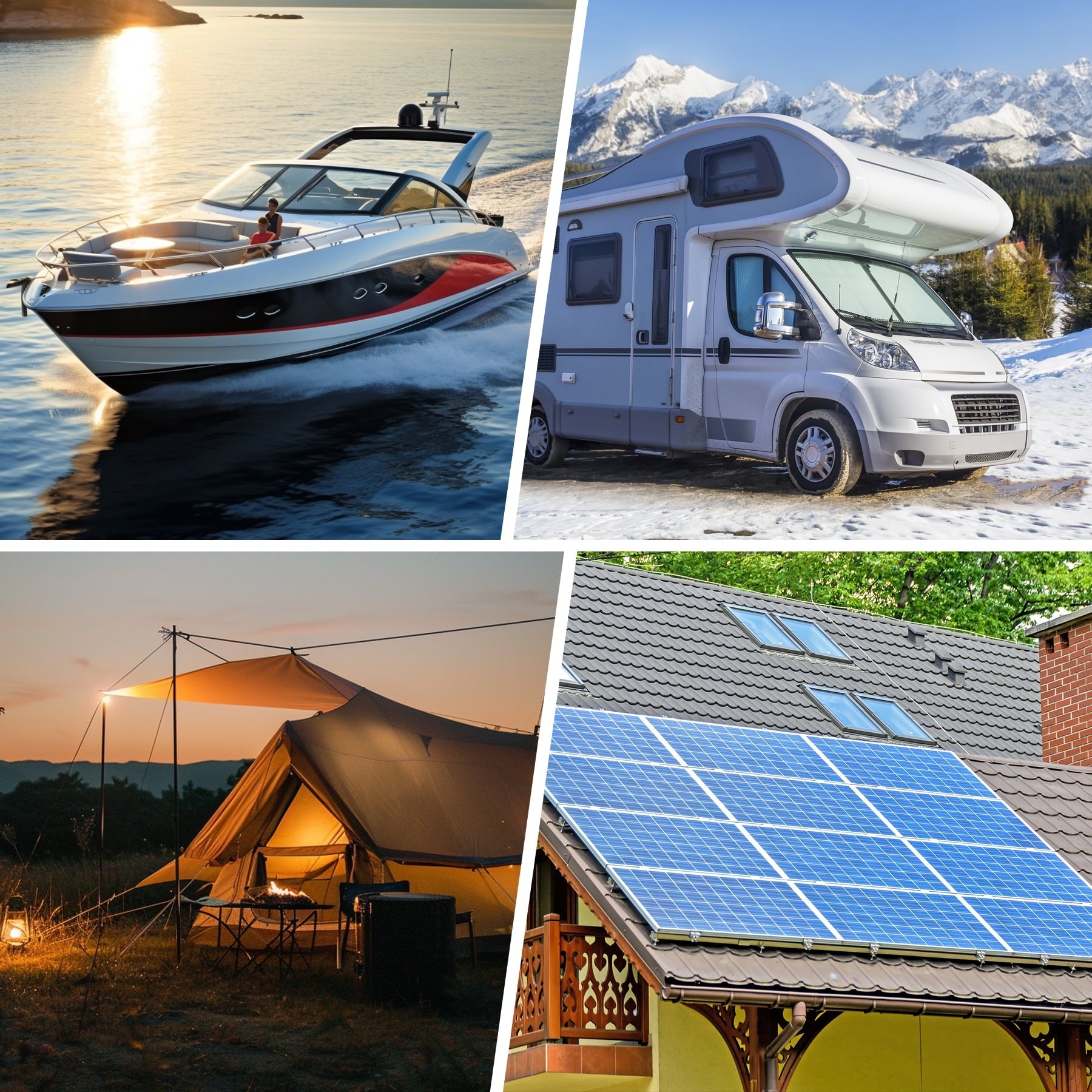 - It ‘s perfect for off-grid solar system and outdoors application such as home backup power, RV, camping, sail boat, etc.