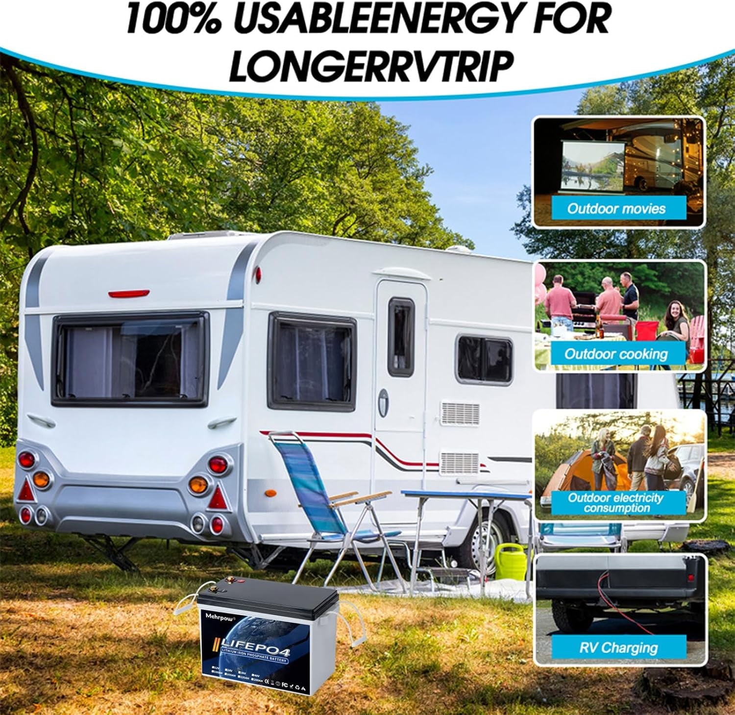- 【59lbs Ultra-Lightweight|2X Lead-Acid Capacity|Plug & Play|All-Scenario Compatibility】 Revolutionary lightweight design(only 59Lbs—50% lighter than lead-acid equivalents!) allows easy one-person installation. With 300Ah usable capacity (vs. 50% for lead-acid), enjoy double runtime for RV appliances, solar systems, golf carts, and marine trolling motors. Engineered for -20°C~60°C operation and IP65 protection*against moisture/vibration, it outperforms traditional batteries in weight, space efficiency, and maintenance-free reliability. Simplify your setup—plug in and power up!