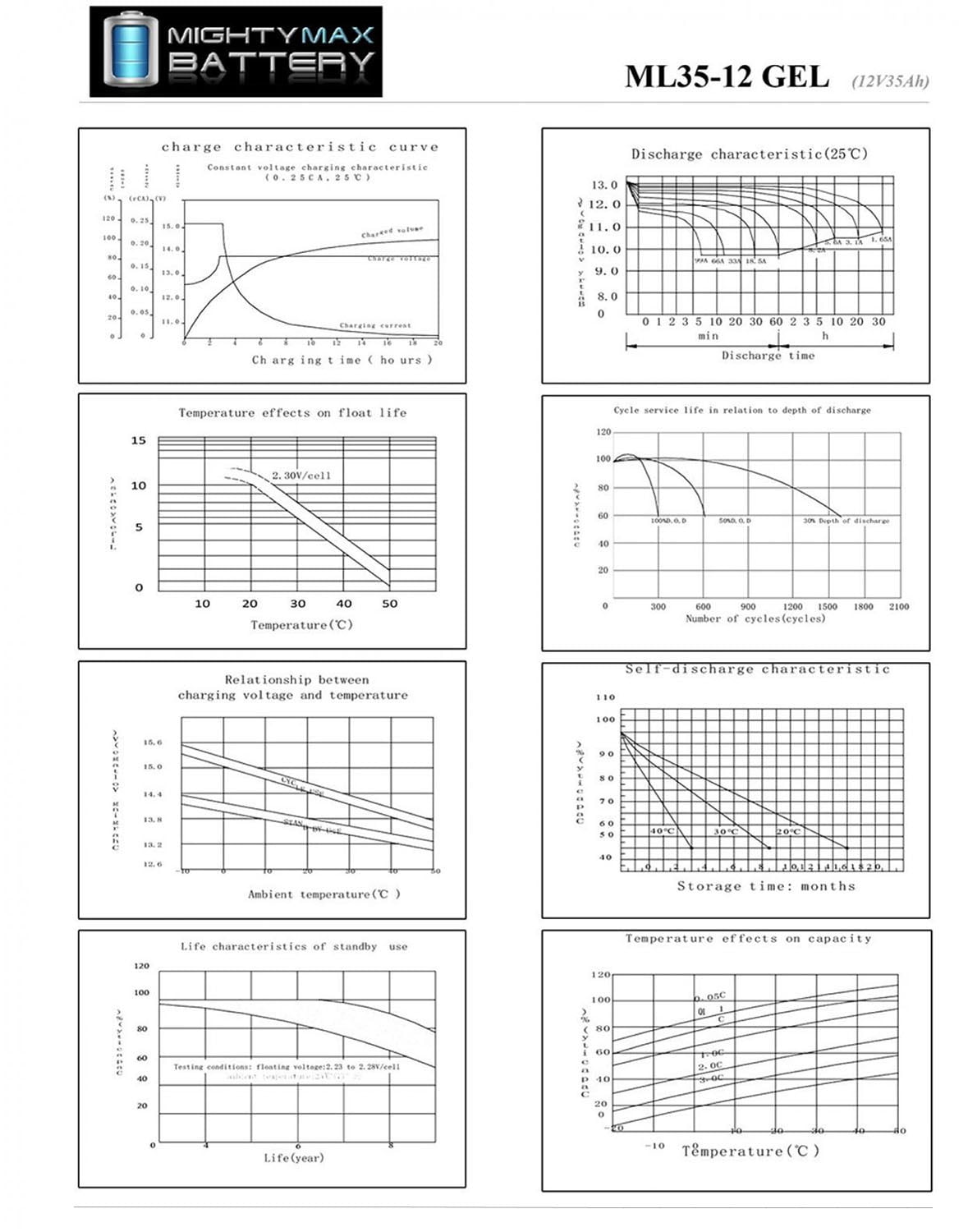Delivering power when you need it, the Mighty Max ML35-12GEL 12 Volt 35 AH (Maintenance Free) battery. Requires no addition of water during the life of the battery. The Mighty Max ML35-12 GEL is a TRUE DEEP CYCLE battery that can be mounted in any position, requires no maintenance. When a Gel Cell battery is charged, no hazardous fumes escape the battery case, gases are processed within the battery itself.