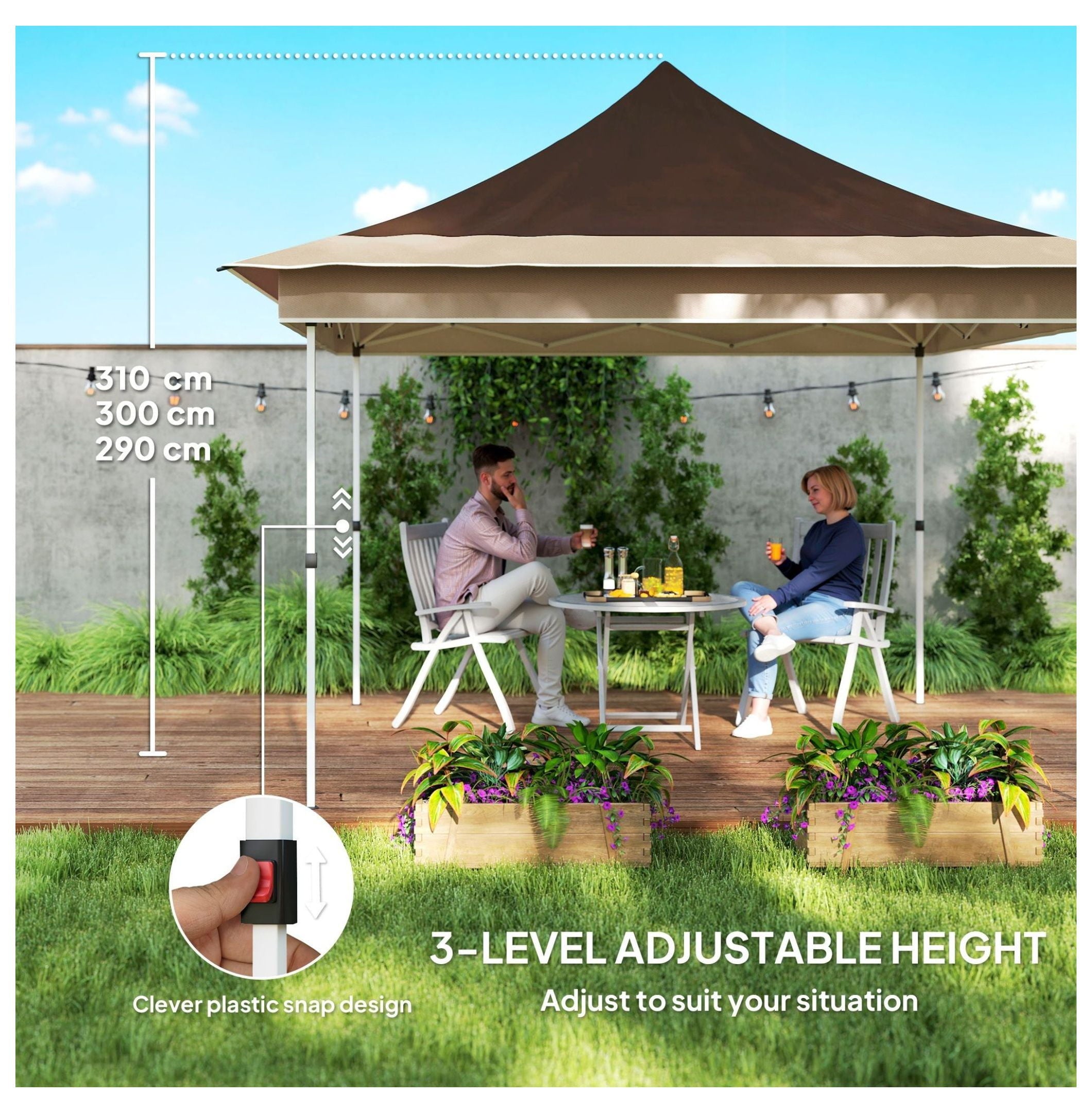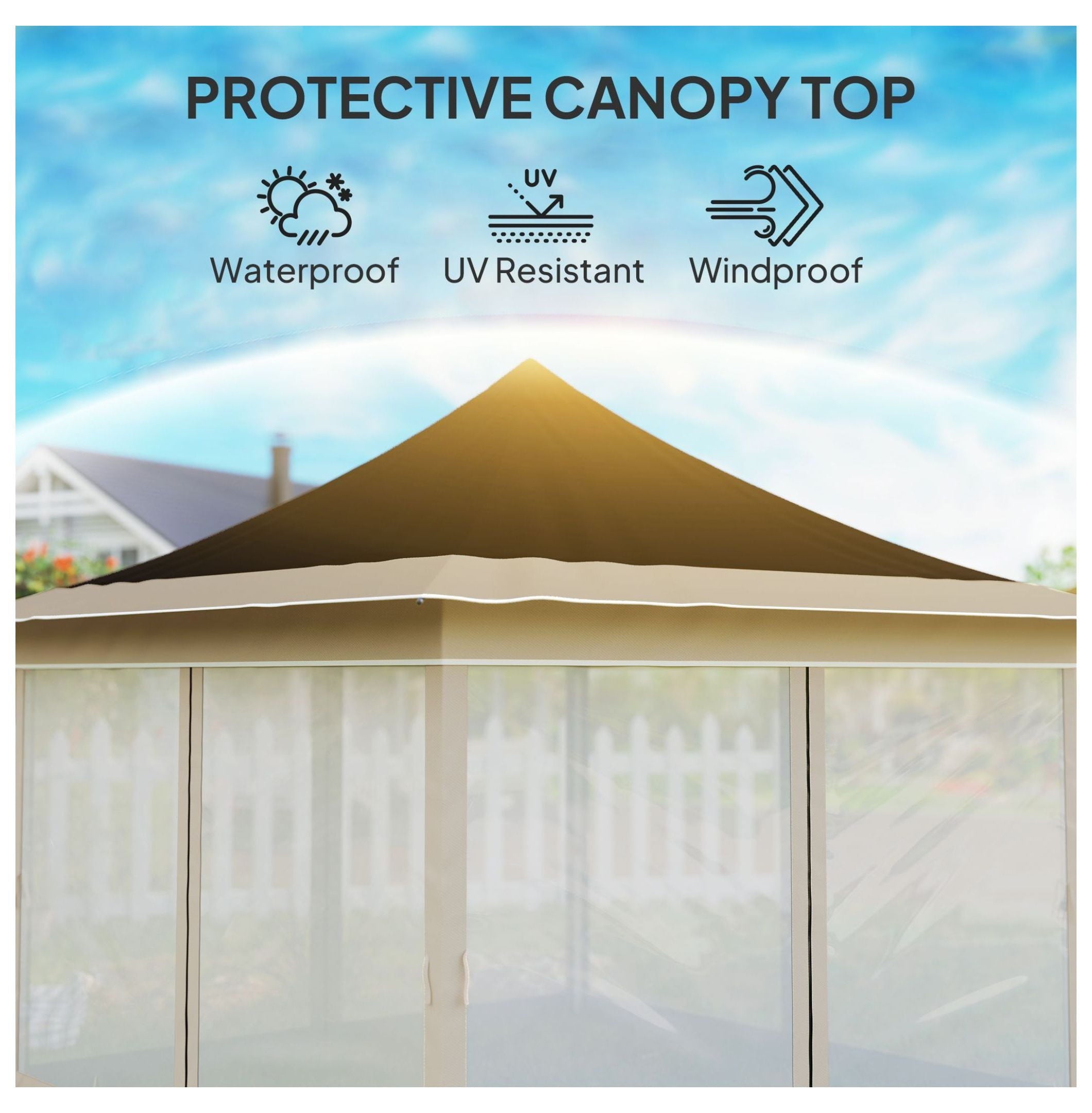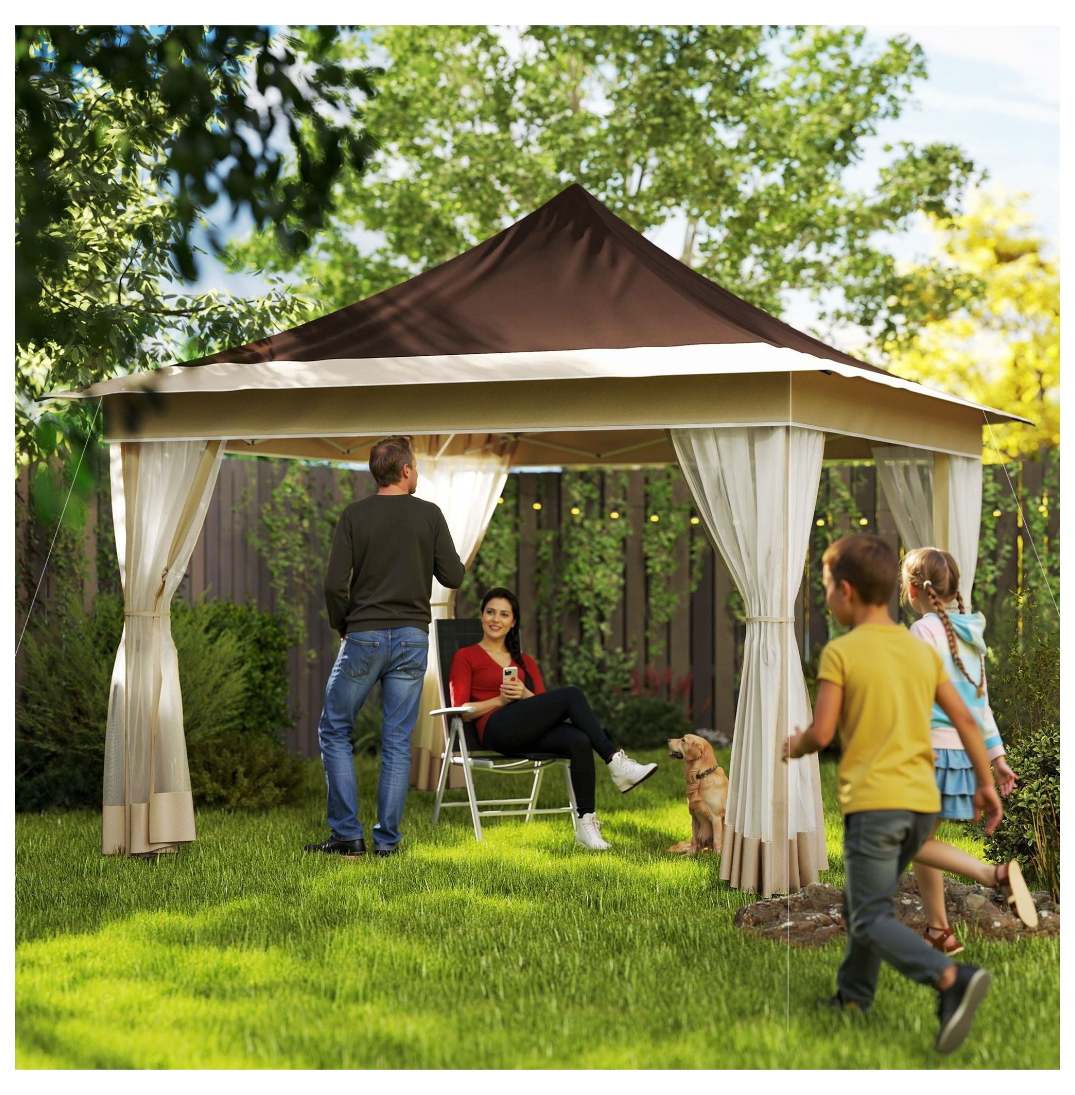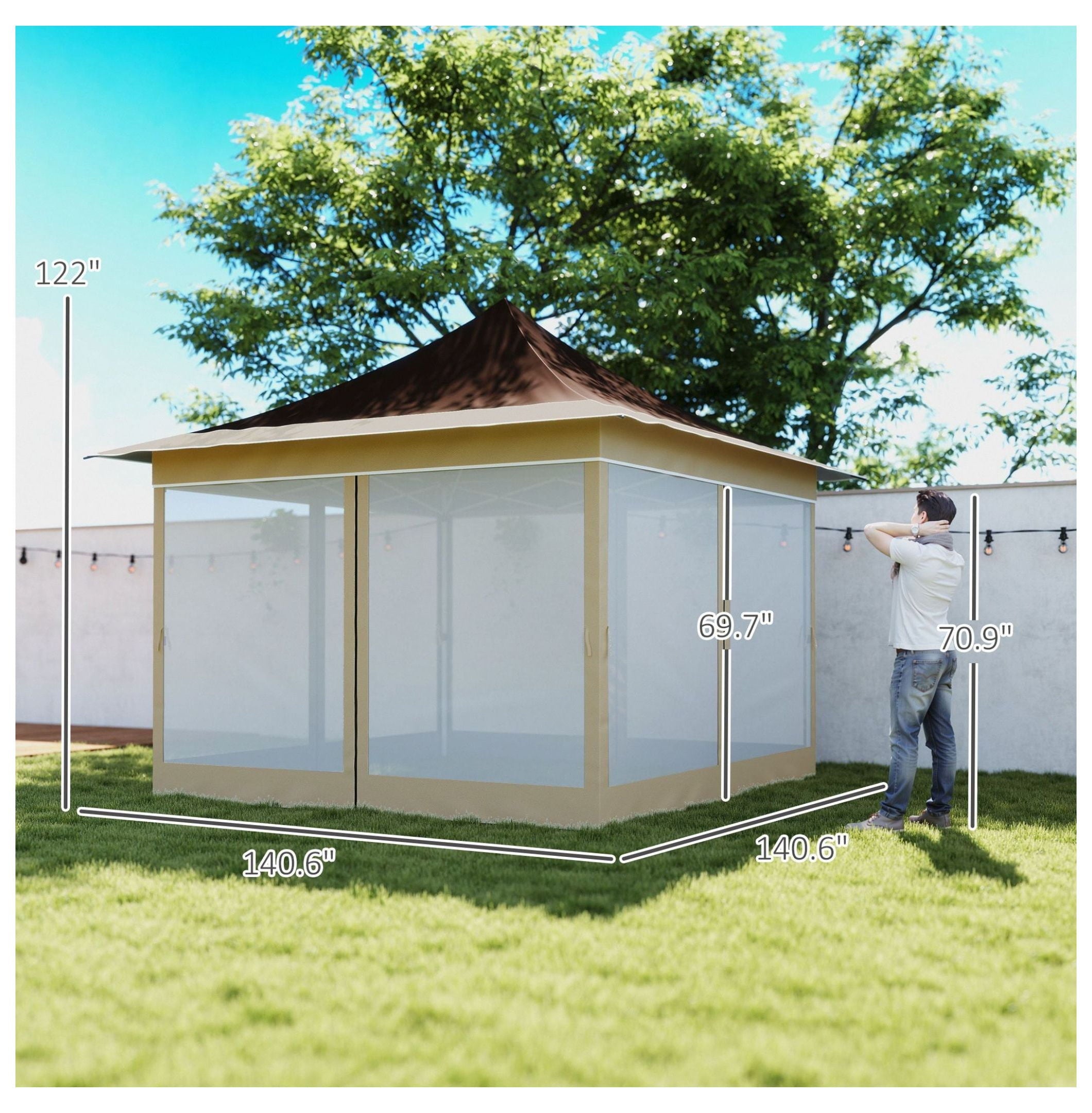 - 【Spacious & Versatile】: Offers a generous 12×12 foot area, comfortably shading up to four people; ideal for patios, gardens, picnics, parties, and other outdoor activities; overall dimensions: 140.6″ L x 140.6″ W x 122″ H
