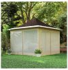 Create a comfortable outdoor space with this 12×12 pop up canopy tent; it’s perfect for gardens, patios, and events. This easy-to-assemble canopy features four mesh netting screens for enhanced airflow and protection from insects, while the UPF50+ Oxford fabric shields you from 98% of harmful UV rays. The adjustable height settings (114.2″, 118.1″, 122″) offer versatile configuration for various needs. Constructed with a durable powder-coated metal frame and includes ground stakes and guy ropes for secure placement. This canopy comfortably shades up to four people. Overall dimensions are 140.6″ L x 140.6″ W x 122″ H, with a column spacing of 111.8″ L x 111.8″ L and mesh wall dimensions of 115″ W x 79.1″ H. Folded dimensions are 8.7″ L x 8.3″ W x 45.7″ H. Windspeed level is acceptable up to 3-4 (7.5-17.4 mph). Includes a convenient carry bag for easy transport and storage. Item Label: 84C-661V00BN. Please note: This canopy is not suitable for heavy weather conditions and requires the use of included stakes and guy ropes for optimal stability.