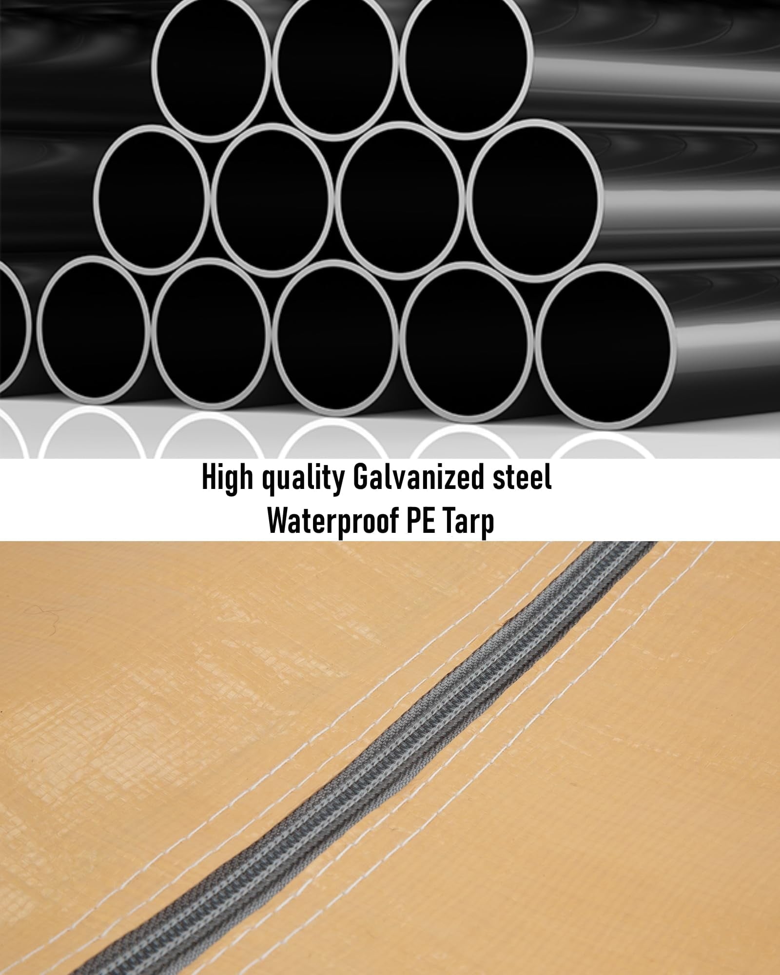 - 【Heavy Duty Carport】All the frames are constructed with 21 Ga. and 18 Ga. reinforced galvanized steel poles; Coated with anti-rust powder to extend the service life