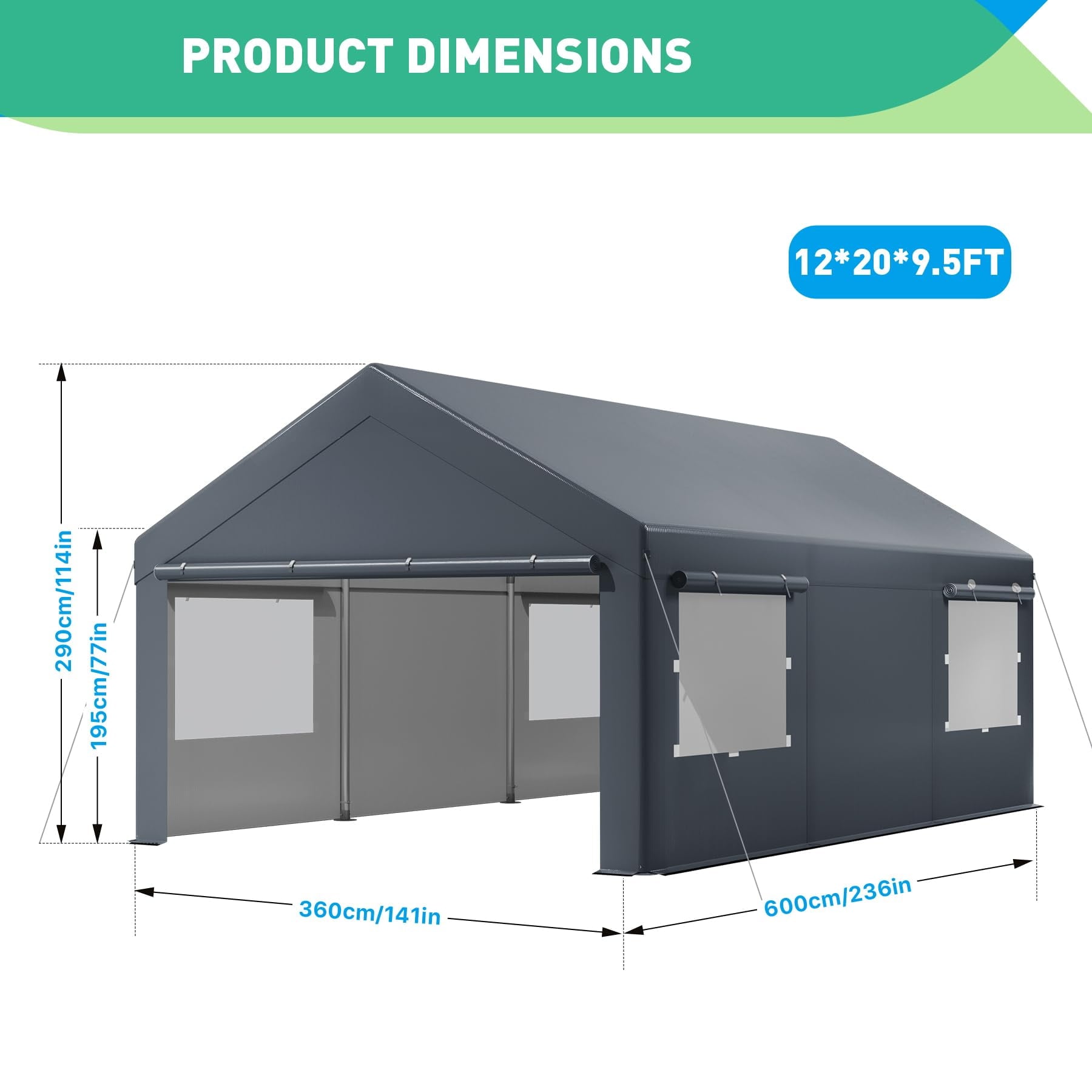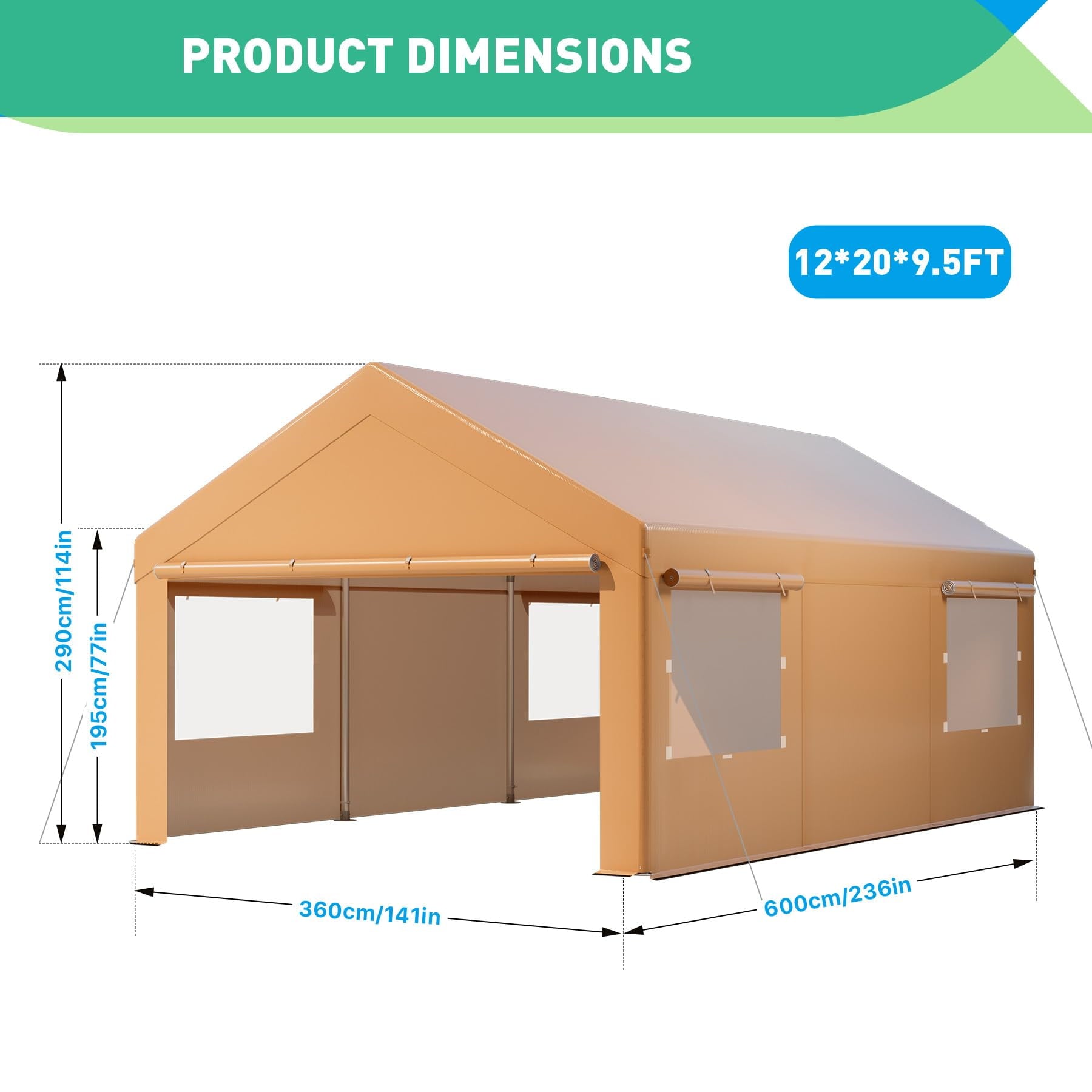 - Large Space: Our size is 12*20FT, which is perfect for parking full-size pickup trucks, SUVs, motorboats and compact travel trailers, and can also be used for parties, weddings, etc.