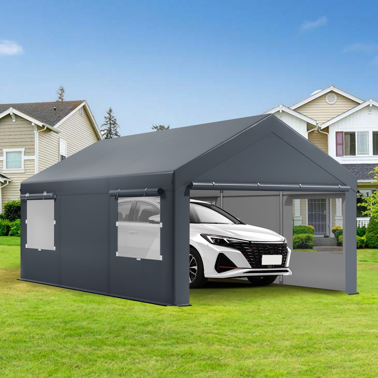 - Ventilation Design: Our carport has 2 mesh roller shutters on each side wall to improve airflow and moisture-proof effect, which not only keeps your vehicle dry, but also enhances ventilation.