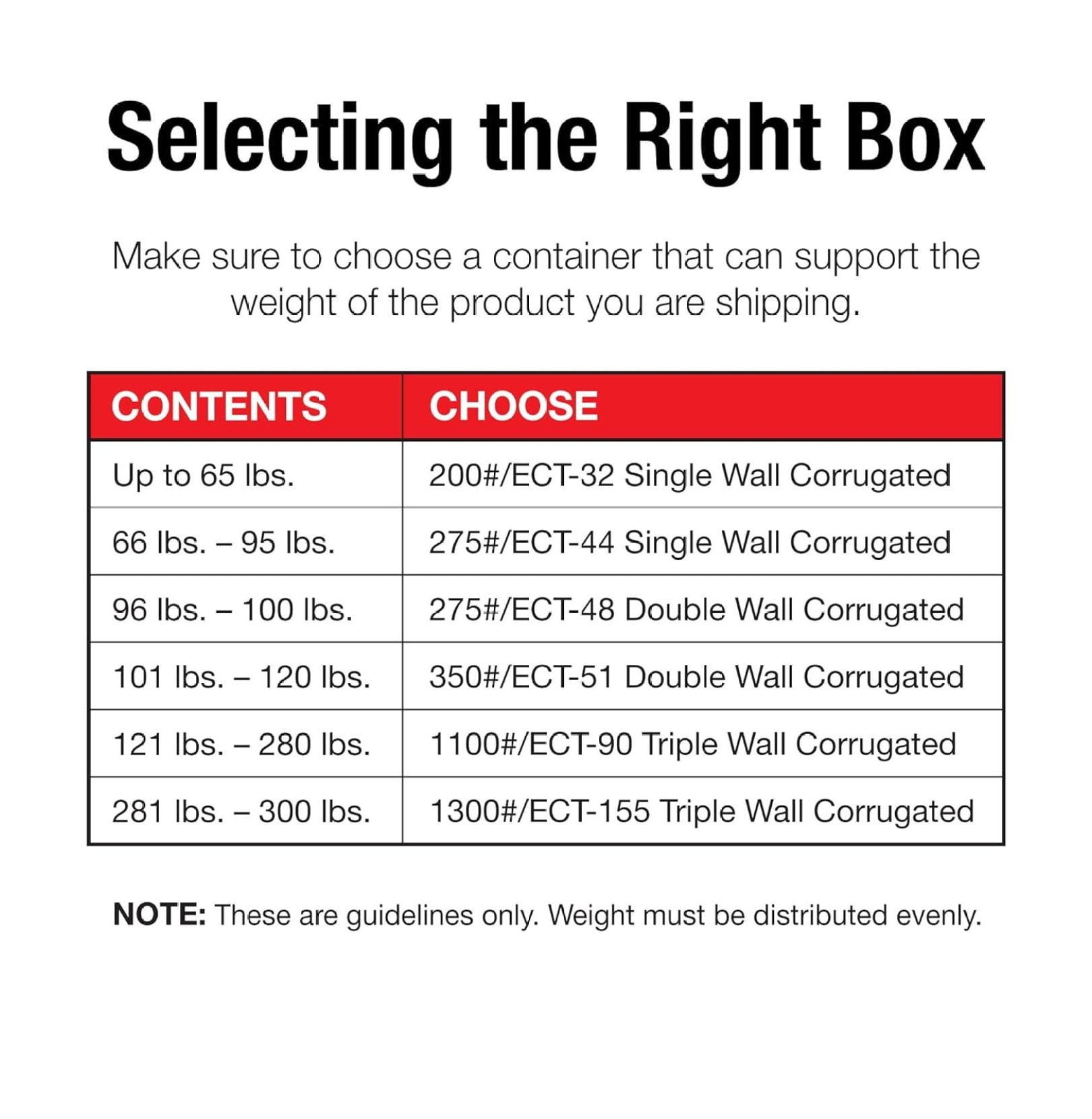- MATERIAL & STRENGTH: Standard strength industrial corrugated boxes are manufactured from 200#/ECT-32 single wall, c-flute corrugated. Estimated weight capacity is 65 lbs. (This is a , weight must be distributed evenly).