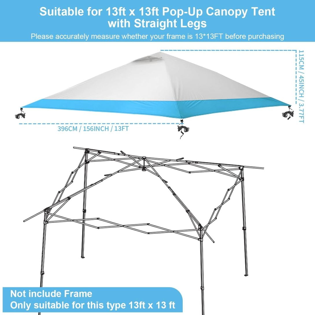 • 【❥Easy installation and removal】 -13×13 single tier waterproof instant canopy silver coated cover with its easy-to-use attachment system, you can quickly and effortlessly install or remove the Replacement Top Cover.