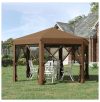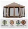Home Outdoor Canopies 13×13 Pop Up Canopy, Hexagonal Brown Canopy with Mesh Walls – Adjustable Outdoor Camping Tent with Steel Frame & Stakes