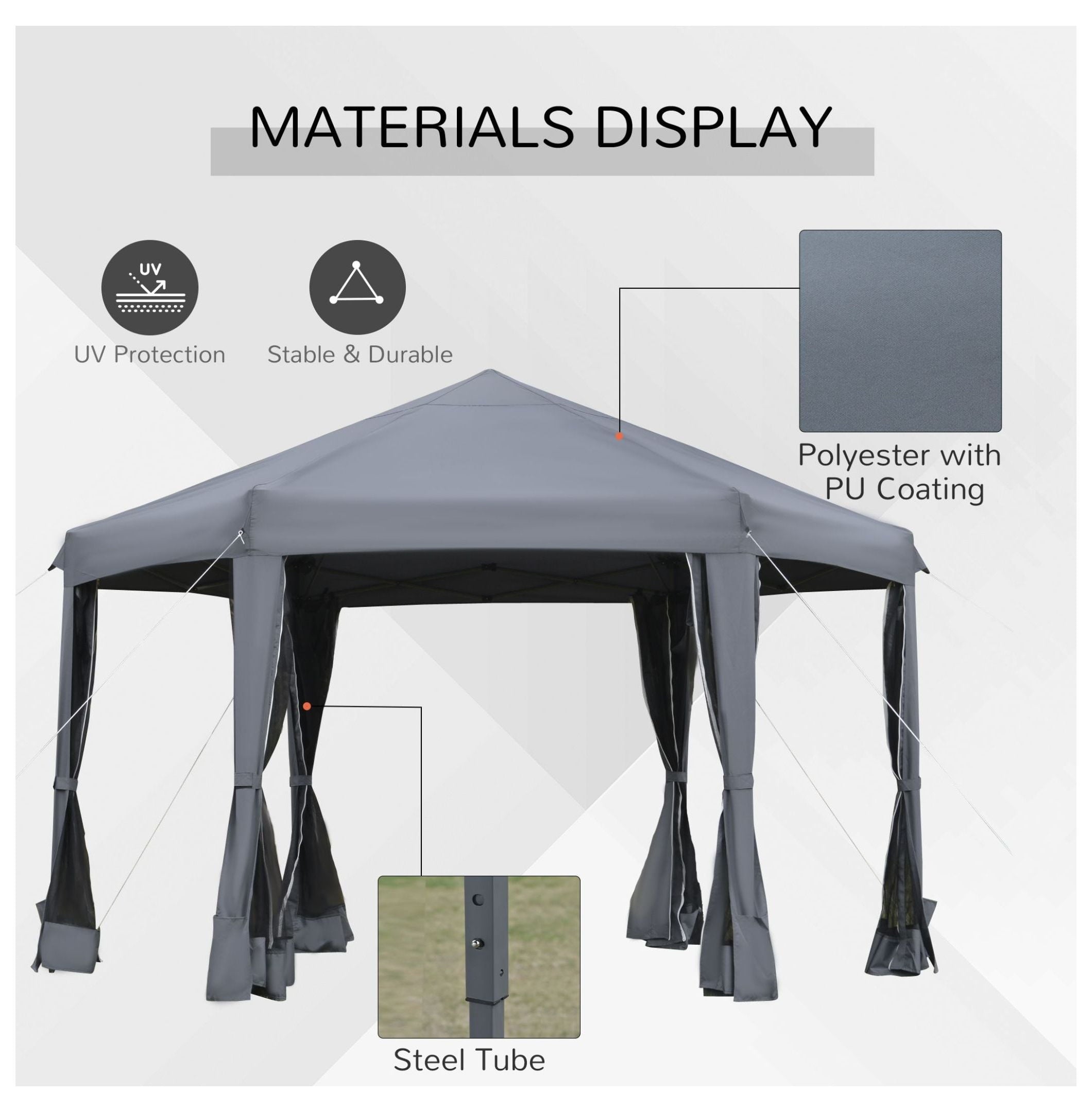 - 【UV Protection & Breathable Fabric】: Constructed with a breathable polyester fabric featuring a PU coating; this canopy provides excellent UV protection; keeping you cool and comfortable during sunny days; the hexagonal top offers a larger shaded area