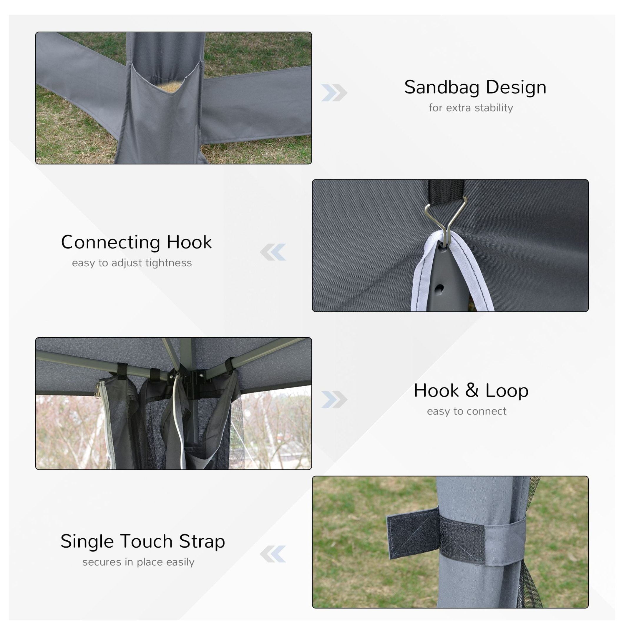 - 【Mesh Sidewalls & Ventilation】: Equipped with six removable mesh sidewalls; offering excellent ventilation while keeping insects and debris out; creating a comfortable and enjoyable outdoor space for events or relaxation