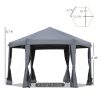 Enjoy the outdoors with the 13′ x 13′ pop-up canopy; ideal for camping, events, and gatherings. This hexagonal canopy features a durable polyester fabric top offering UV protection and a spacious area for relaxation. The adjustable legs allow for three height settings, adapting to your needs. Six mesh sidewalls provide ventilation and keep insects out, while sand slots and included ropes/stakes enhance stability. A convenient carry bag is included for easy transport and storage. The steel frame offers robust support, resisting bending under pressure. Overall dimensions are 12.5’L x 10.5’W x 8.7’H, with a folding size of 46″L x 9.75″W x 10.75″H. Mesh sidewall size is 6.4’L x 5.7’W. Please note: do not leave the canopy erected during inclement weather. Assembly is required. Experience a hassle-free outdoor experience with the pop-up canopy – quick setup, reliable protection, and convenient portability all in one.
