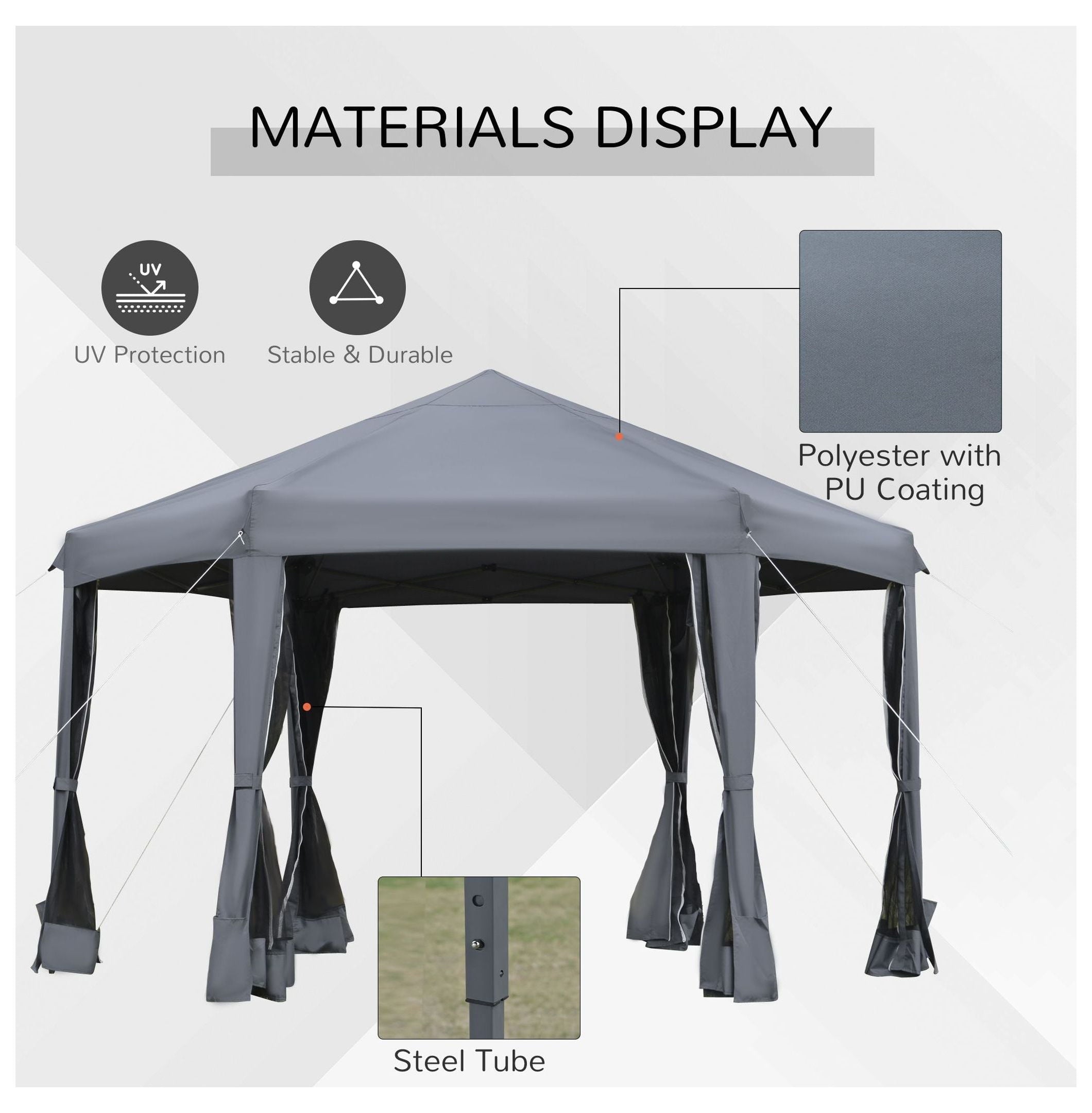 - 【Spacious Hexagonal Design】: Provides a generous 12.5’L x 10.5’W x 8.7’H space; the hexagonal top maximizes usable area; the 11.8′ single side length ensures ample room for tables, chairs, and guests, accommodating various outdoor activities