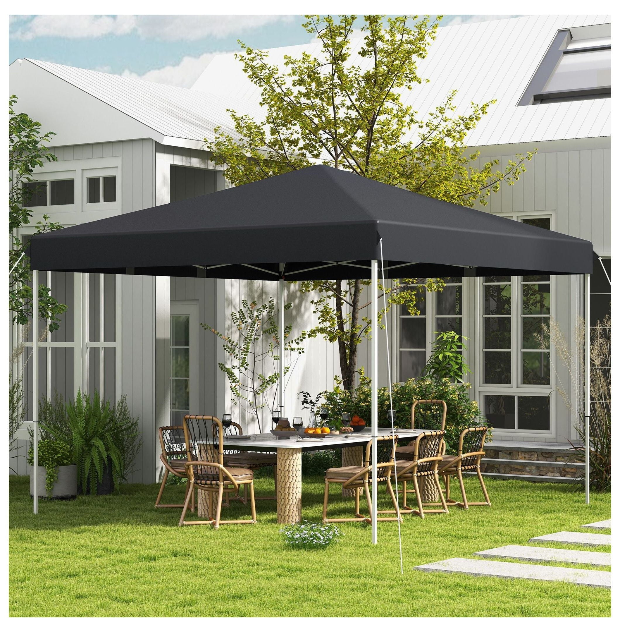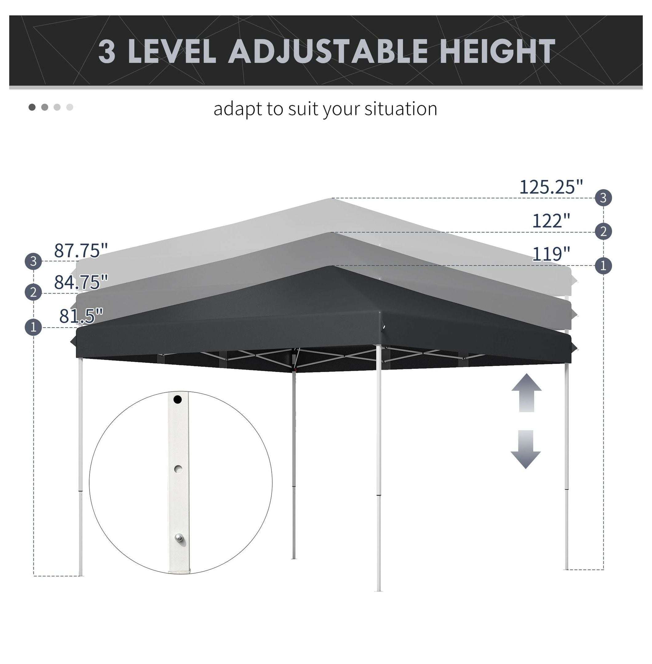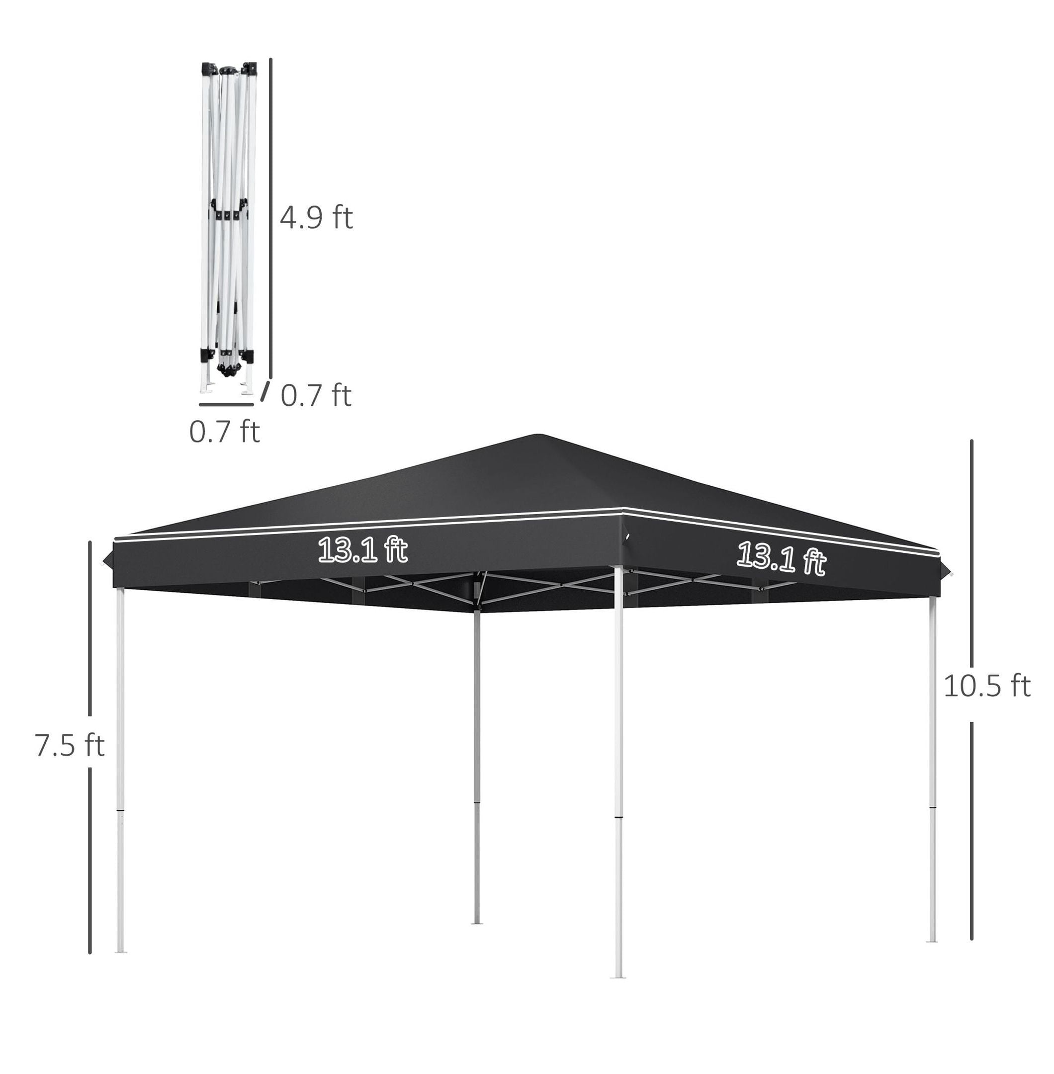 Enjoy comfortable shade with this 13×13 pop-up canopy tent, perfect for outdoor events like carnivals, cookoffs, and parties; comfortably fits up to 16 people. Crafted with a durable steel frame and silver-and-PU-coated Oxford fabric, this canopy provides reliable protection from UV rays. The three-level adjustable legs allow you to customize the height to your preference, with a top height of 10.4′ and eaves height of 7.3′. Easy setup and teardown are ensured with the included carrying bag for convenient transport and storage; folded dimensions are 8.75″L x 8.75″W x 59″H. This package includes the canopy, 8 ground stakes, 4 wind ropes, a carrying bag, and a manual. Secure your canopy with the included guy ropes and ground stakes, ideal for soft ground. Please note: this canopy is not designed to withstand adverse weather conditions such as rain, snow, sleet, or hail. Overall dimensions are 13.1′ L x 13.1′ W. Two people are recommended for installation. Experience lasting durability and convenient portability with this essential outdoor shelter.