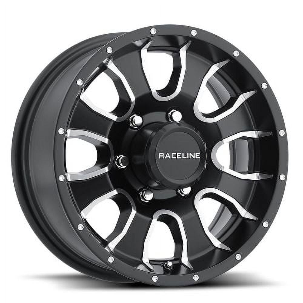 - Includes a satin black push thru cap with embossed chrome Raceline logo