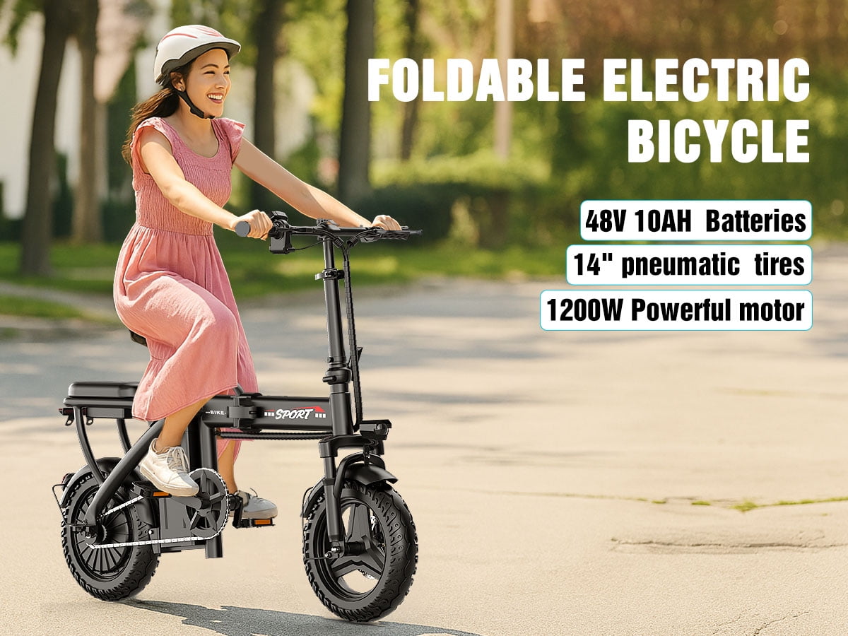 - This electric bicycle is equipped with a powerful 1200W maximum motor, with a top speed approaching 25 miles per hour, ensuring smooth acceleration and easy climbing. Whether it’s for daily commuting or weekend adventures, it provides reliable power for every ride.High loading capacity 48V 10Ah perceptive battery (576Wh), ultimately reaching 35 miles in electrically assisted mode. Each charge leads to starvation, with the first charge taking approximately 4 to 5 hours.【 Enhanced Safety and Comfort 】 The tires and shock absorption system can absorb impact forces, ensuring smooth operation on any stationary surface.There are power supply options for the Lightning Running mode: pure electric (easy cruising), assisted pedal-assisted (extending the range with minimal effort), and manual pedal-assisted (traditional running), suitable for different needs, whether for commuting, exploration or fitness.【 Compact and Convenient Design 】 The foldable frame is easy to store and transport, with a positioning area not exceeding 0.5 square meters. It is perfect for urban life, travel or compact Spaces – it can be easily placed in the trunk of a car, apartment or office