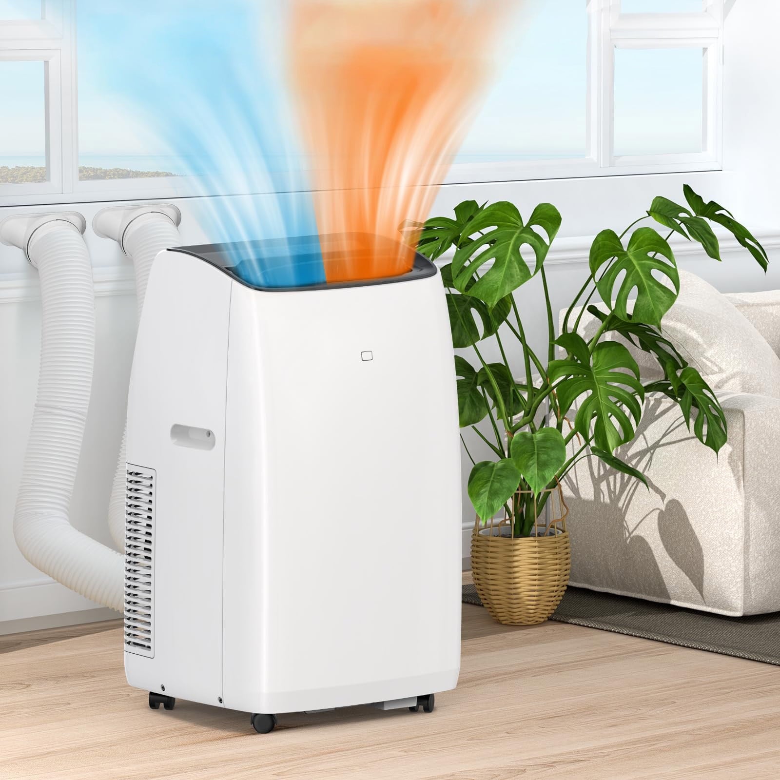 - Easy Mobility & Install: With casters on the bottom and side handles on both sides of the small air conditioner, this mobile AC can be moved without any hassle. Includes window kit for installation