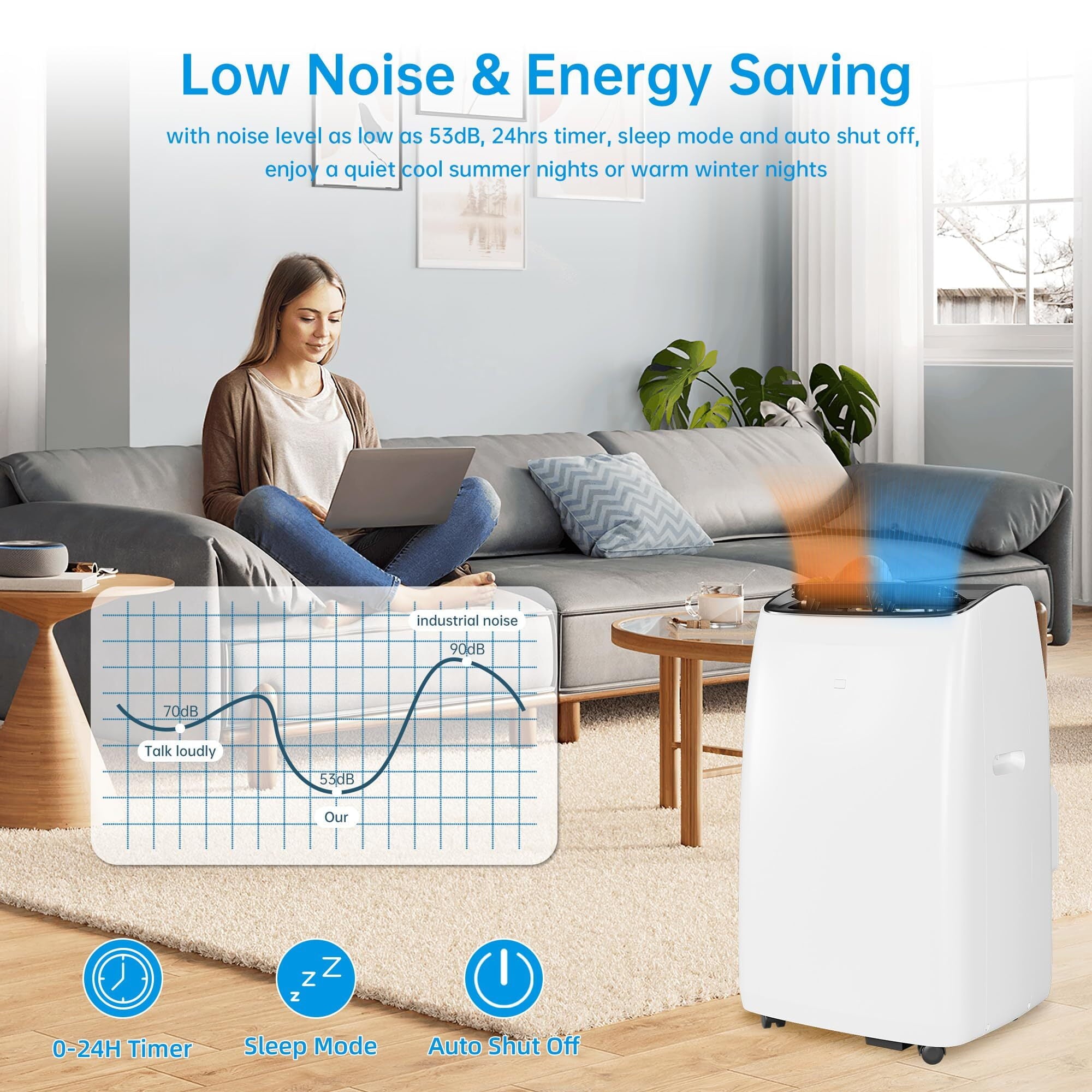 - Ultra Quiet: Our portable AC unit with Inverter technology gives powerful and silent performance, operating at sound levels as low as 42dB in sleep mode. Inverter technology save energy up to 40%