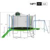 The trampoline features Safeseal System that includes a 360-degree safety net securely attached to the jumping mat, a full enclosure with a zipper door, and a rust-resistant steel ladder for easy access. Additional features include a basketball goal, swing, and plastic slides for added entertainment. The trampoline is designed to be easy to assemble, although it is recommended that two or more people work together. Overall, the 12FT trampoline offers a premium bouncing experience, built with durability in mind, and fun for the whole family.