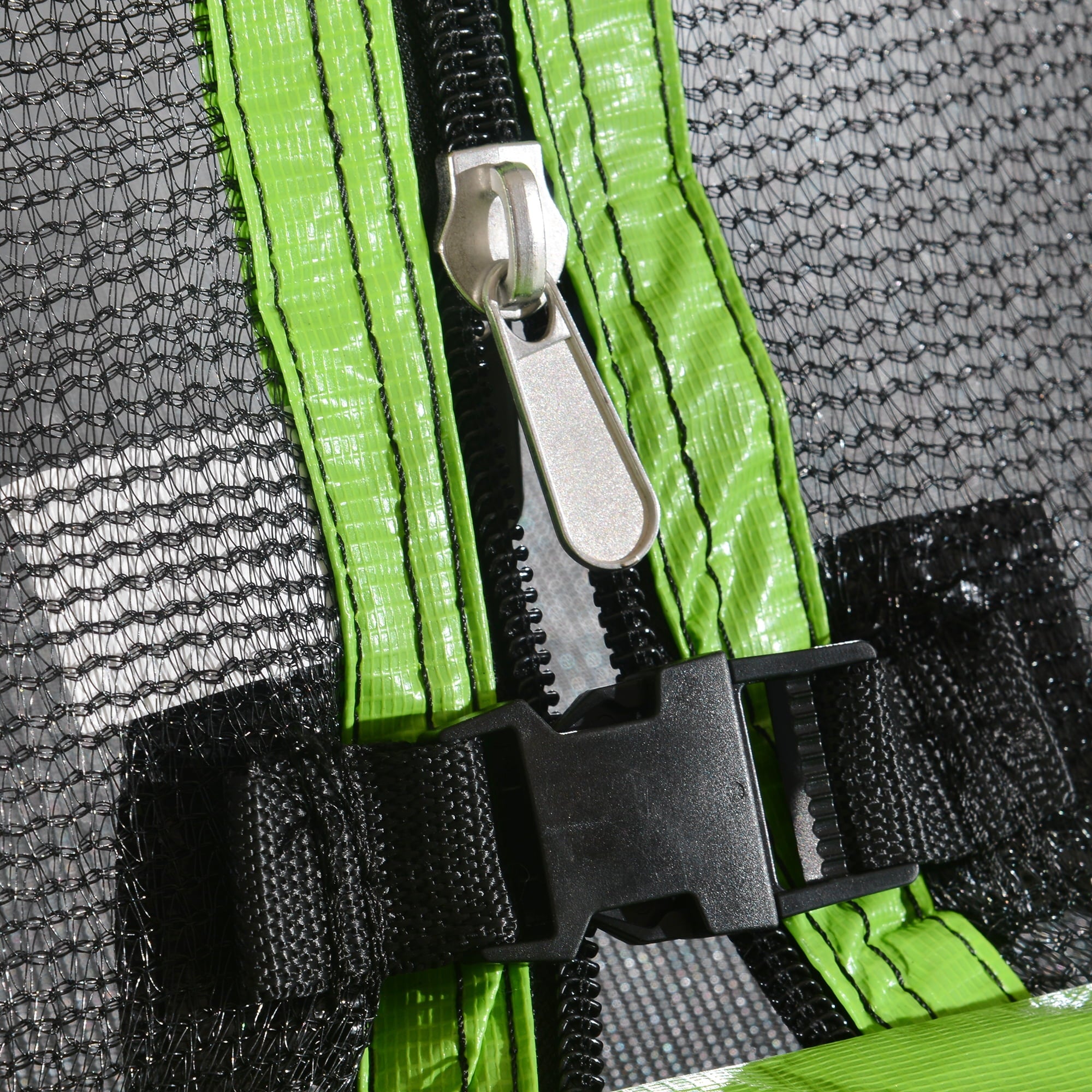 - [Safeseal Enclosure Net]- The trampoline features a 360-degree safety net securely attached to the jumping mat, reducing the risk of injury. It also has a full enclosure with a zipper door for added safety, and a rust-resistant steel ladder for easy access.