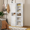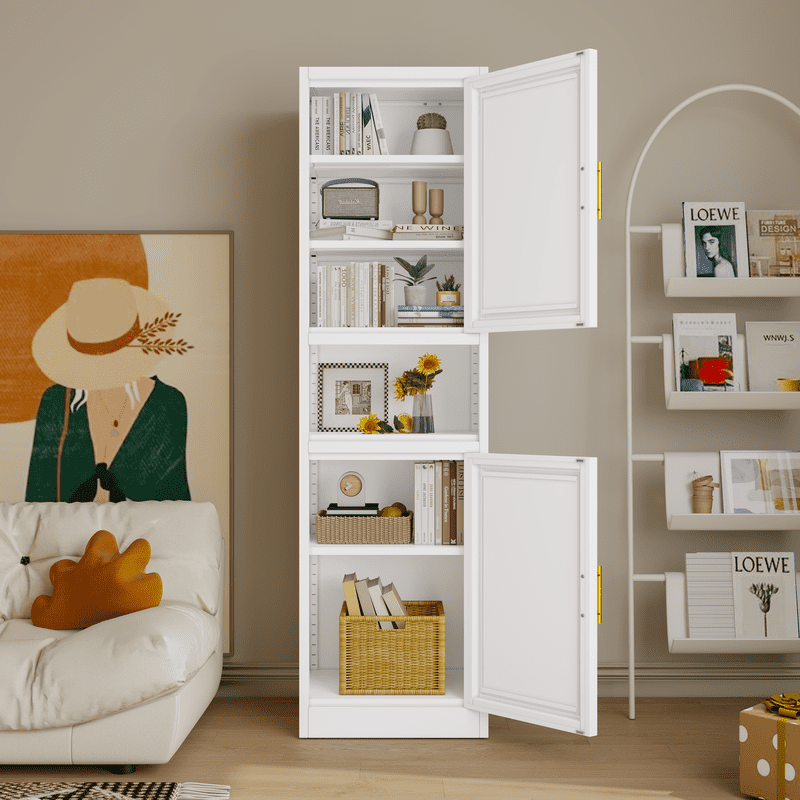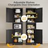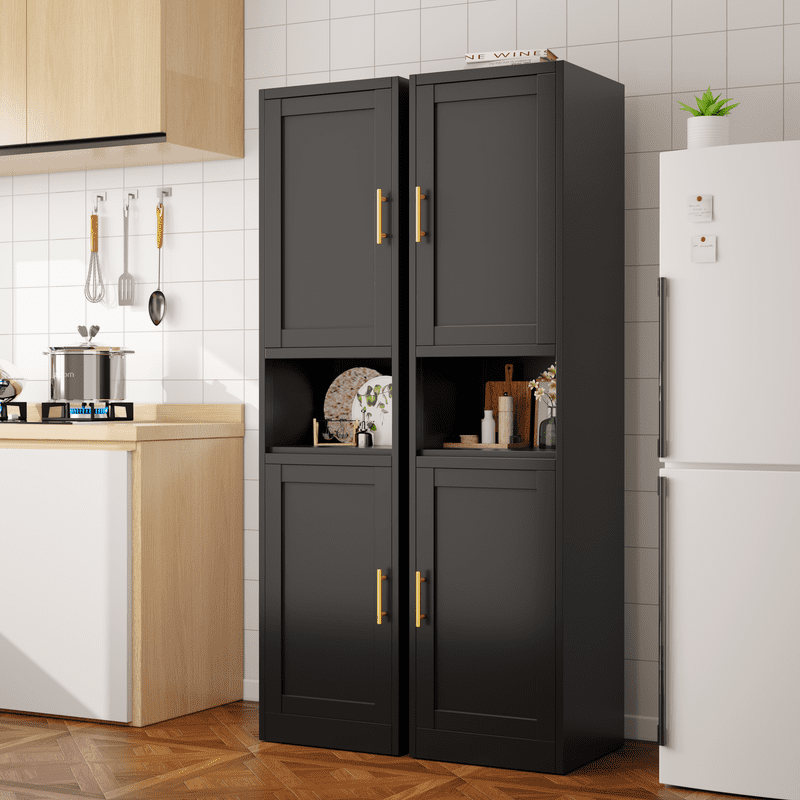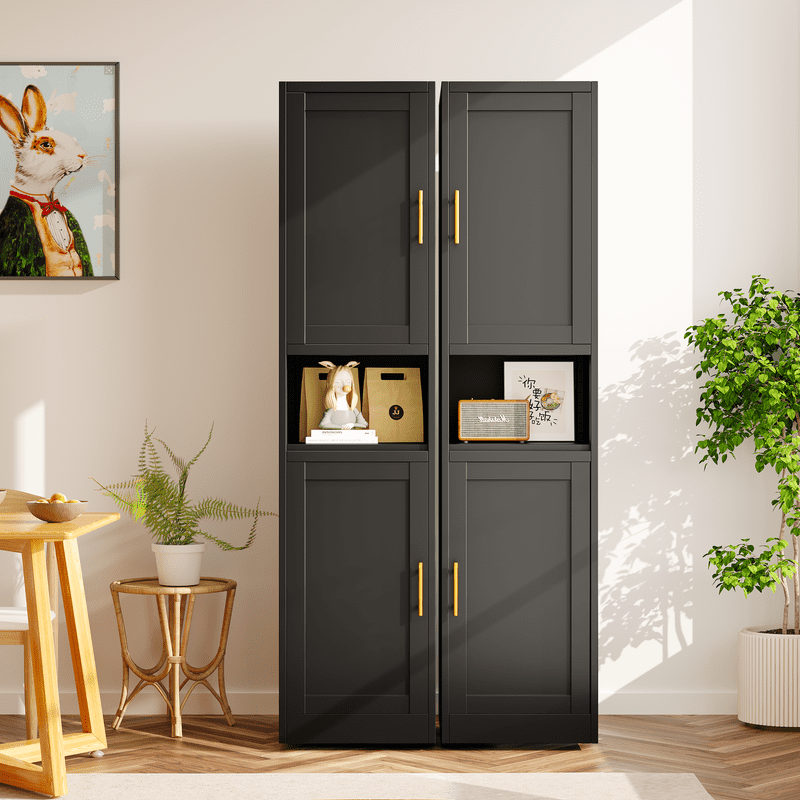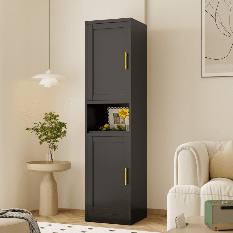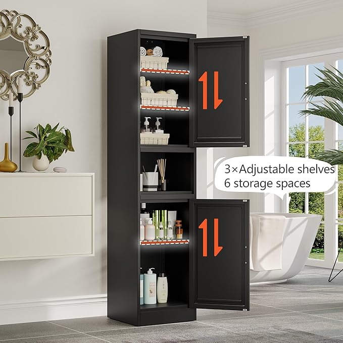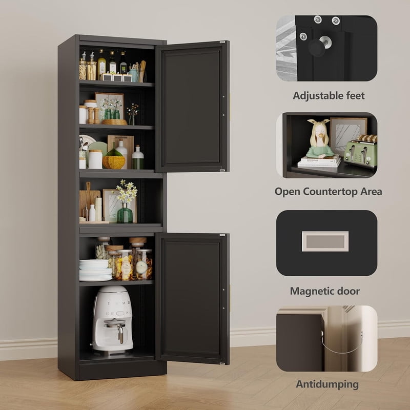 This metal storage cabinet boasts a versatile layout with two spacious cabinets and an open countertop, The narrow design is complemented by stylish golden handles, while inside, you’ll find two enclosed lockers with three adjustable shelves. These shelves can be easily repositioned to accommodate items of various sizes, allowing you to create a storage solution that’s as unique as your lifestyle.