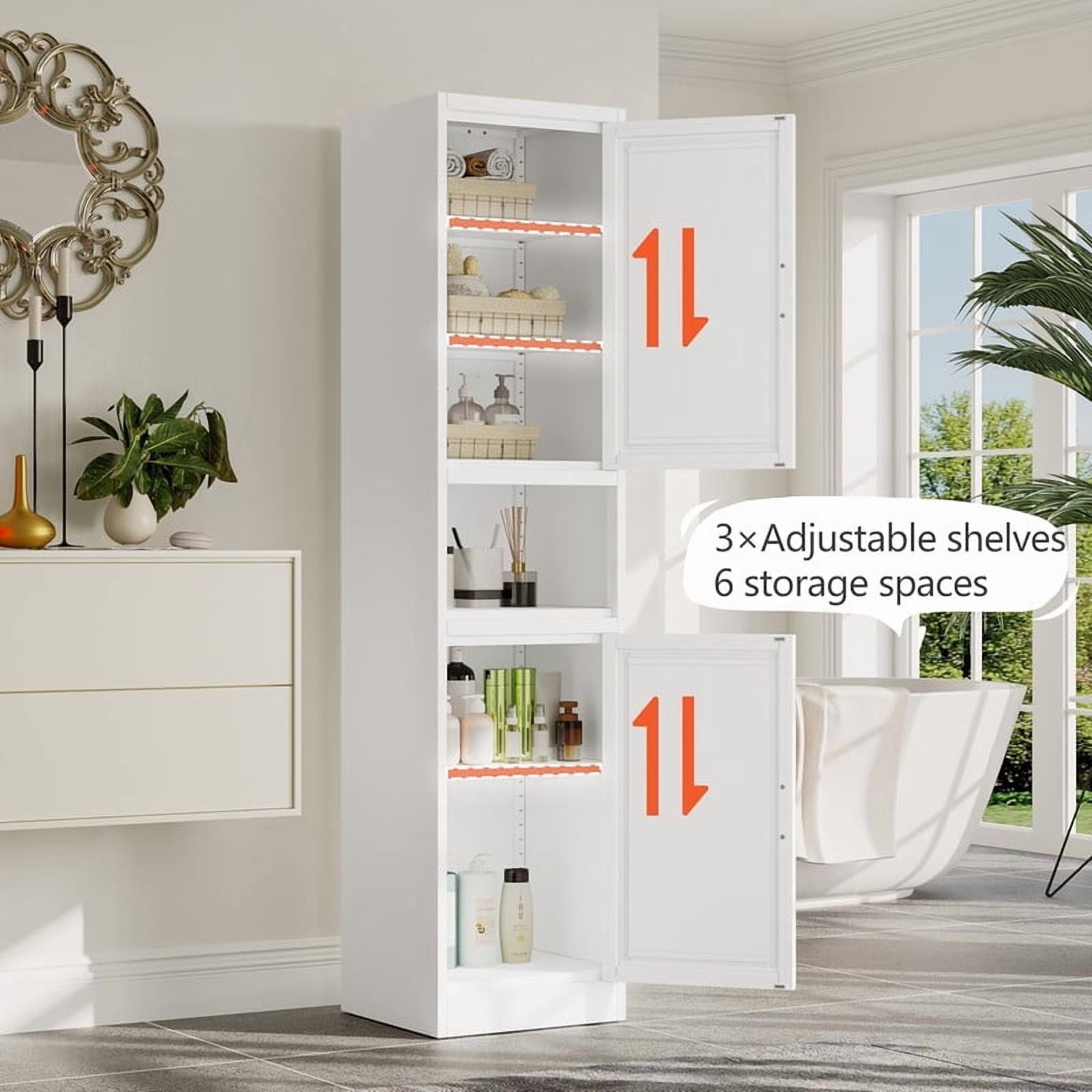 - [Hollow Design] The bathroom cabinet adopts an open hollow design in the middle. You can put commonly used items in the middle for easy access. At the same time, the upper and lower symmetrical design makes the cabinet exquisite and elegant, which is an ideal choice for your home