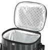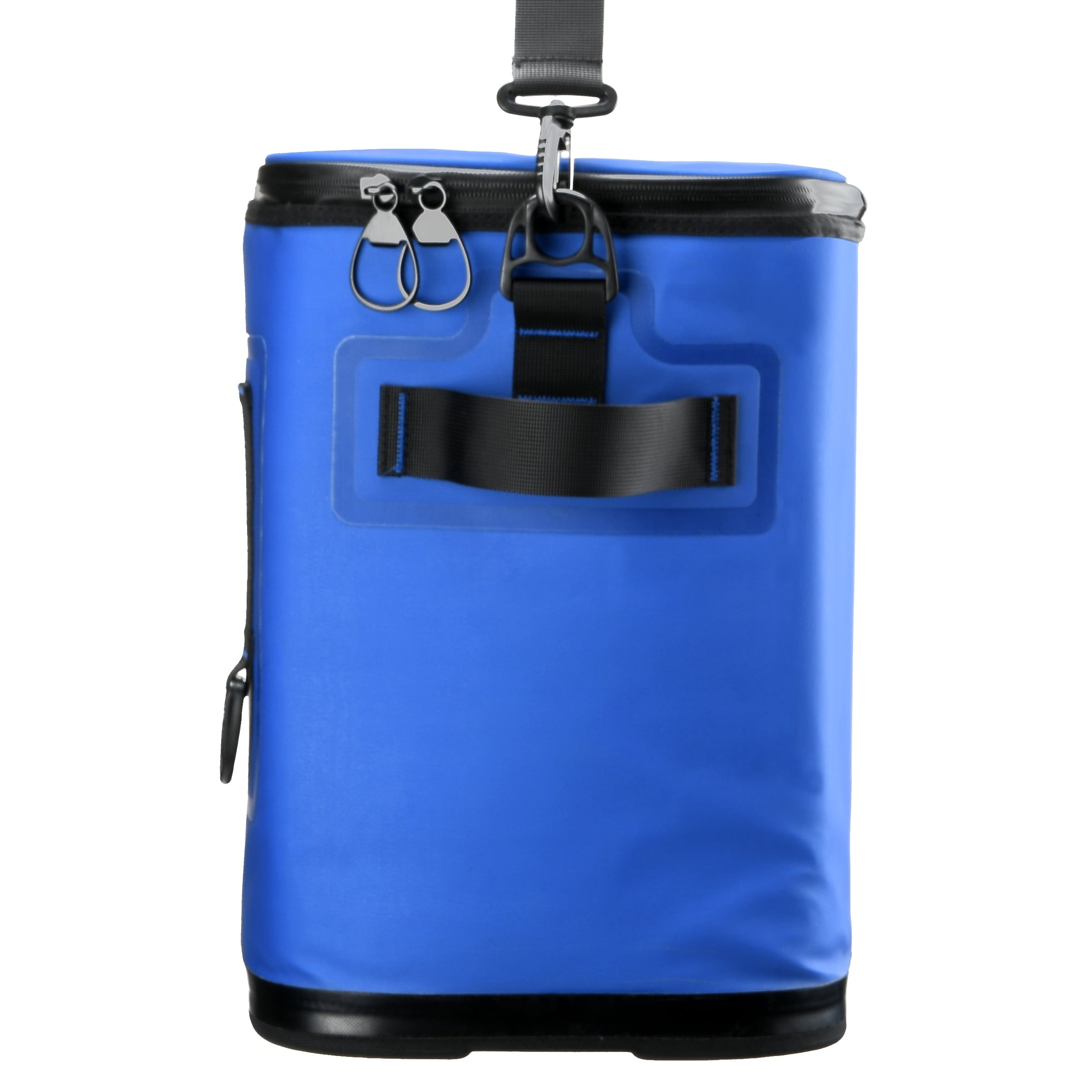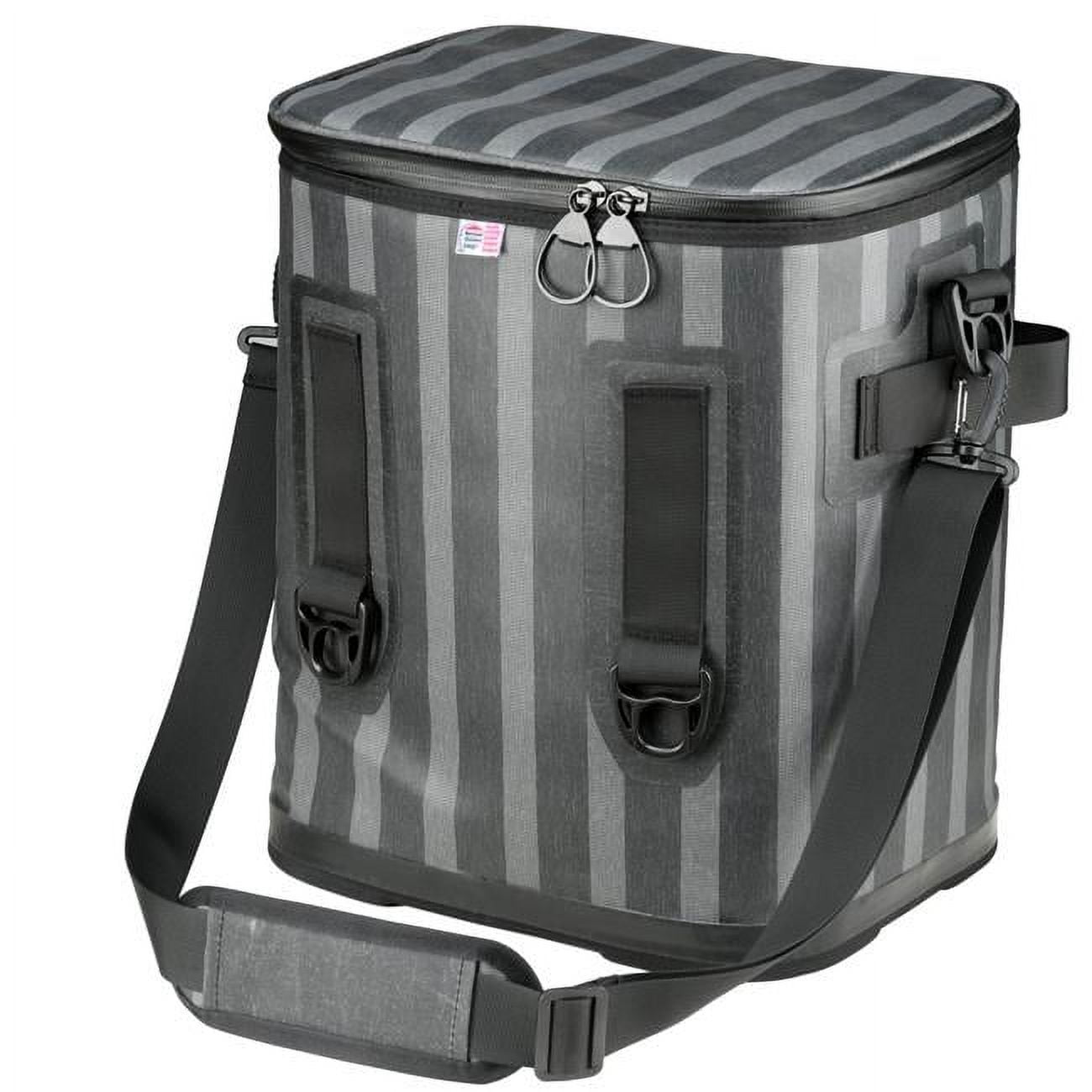 Prepare for a day on the move with this large capacity cooler featuring a padded and adjustable shoulder strap for carrying convenience. Durable, bright blue polyester exterior is leakproof and waterproof. Interior is aluminum foil lined and insulated to keep everything inside hot/cold. Full opening zippered top allows for easy visibility and accessibility to contents. This compact grab-and-go cooler is great for picnics, road trips, camping or canoeing.