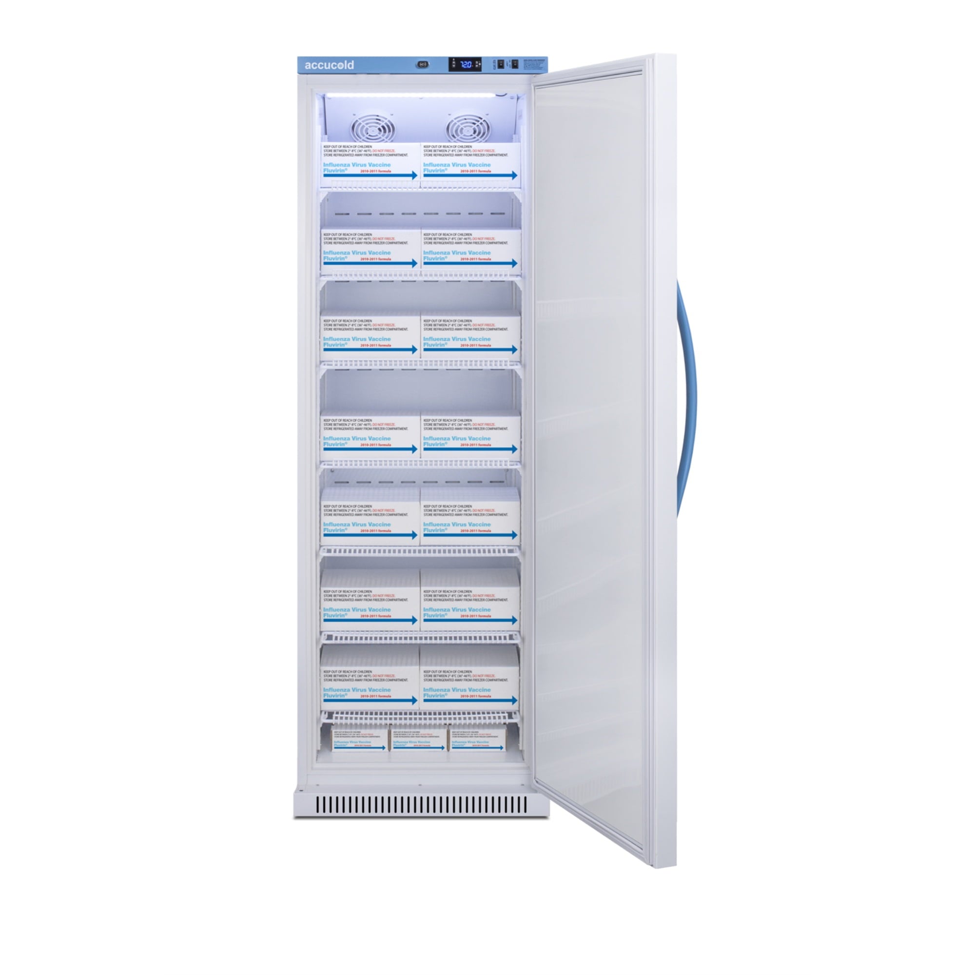 Performance series 15 cu.ft. upright controlled room temperature cabinet for pharmaceuticals and vaccines in a white finish with lock and antimicrobial silver-ion handle