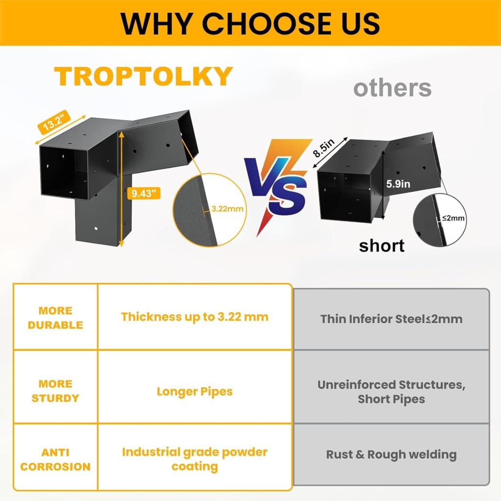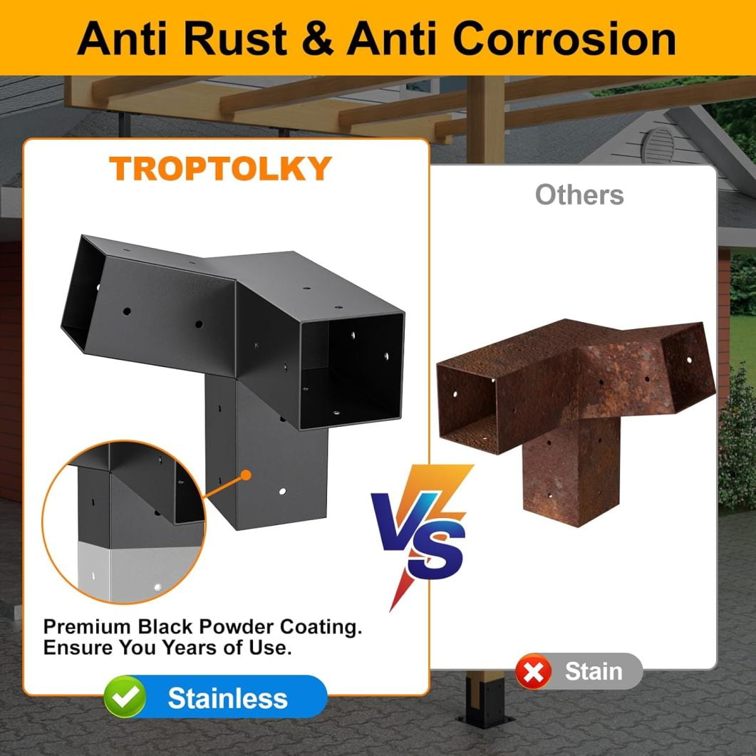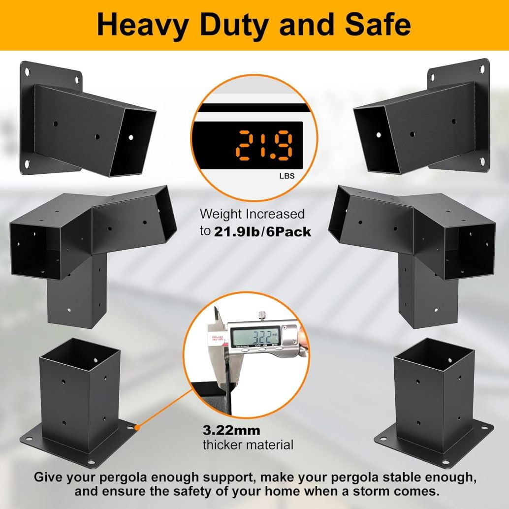 • Safe and Stable :4×4 post brackets weigh up to 21.9 pounds/set. It can give your pergola enough support, make your pergola stable enough, and ensure the safety of your home when a storm comes.