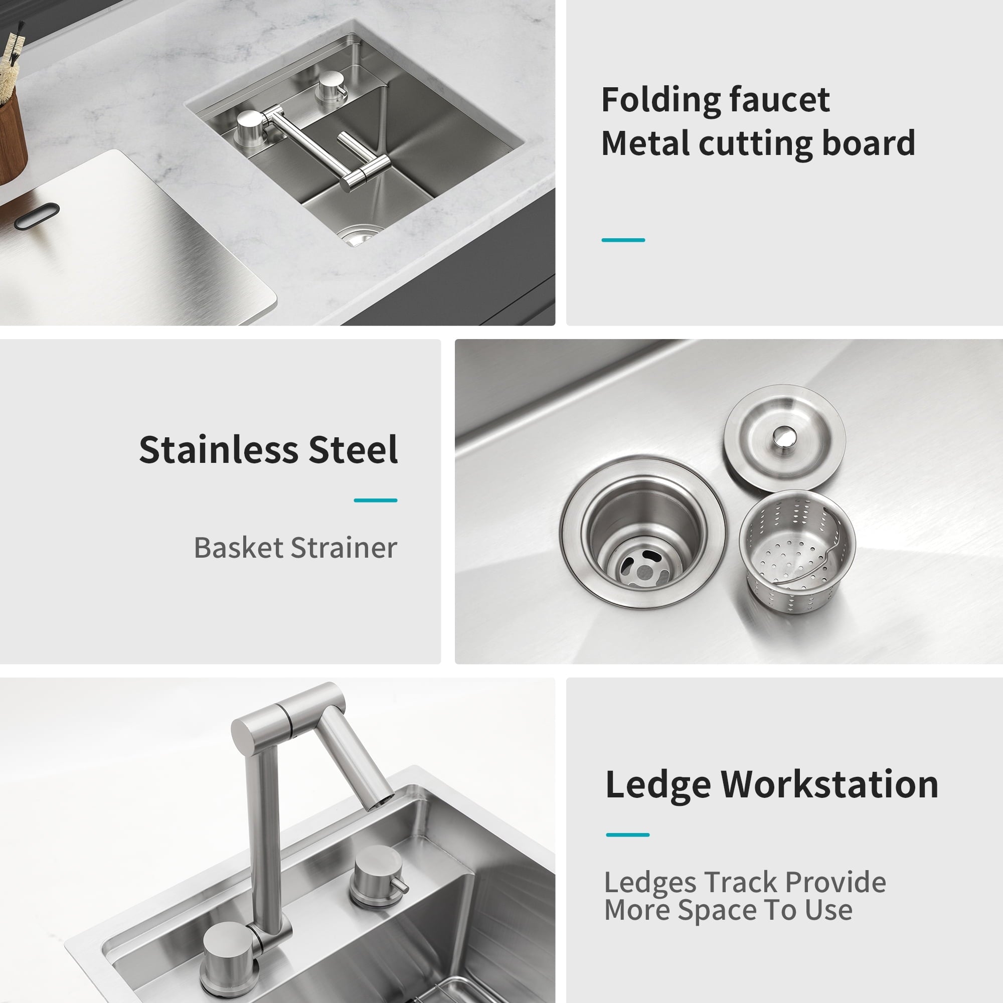 • [Invisible Design] Transform your sink into a seamless workstation by concealing it with a lid, instantly creating a versatile surface for chopping fruits, veggies & more kitchen tasks.