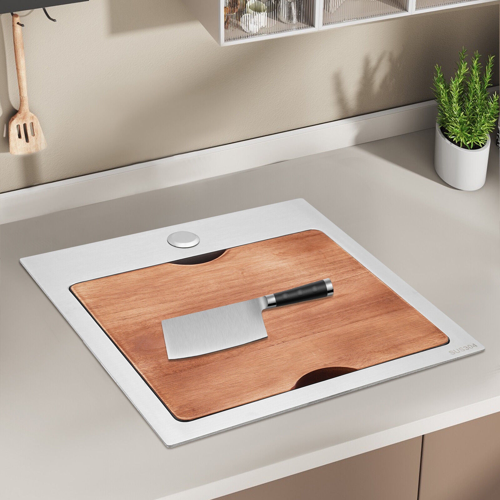 - Space Optimization: The workstation sink is designed to hold the cutting board on a single track, maximizing the available space on the countertop.