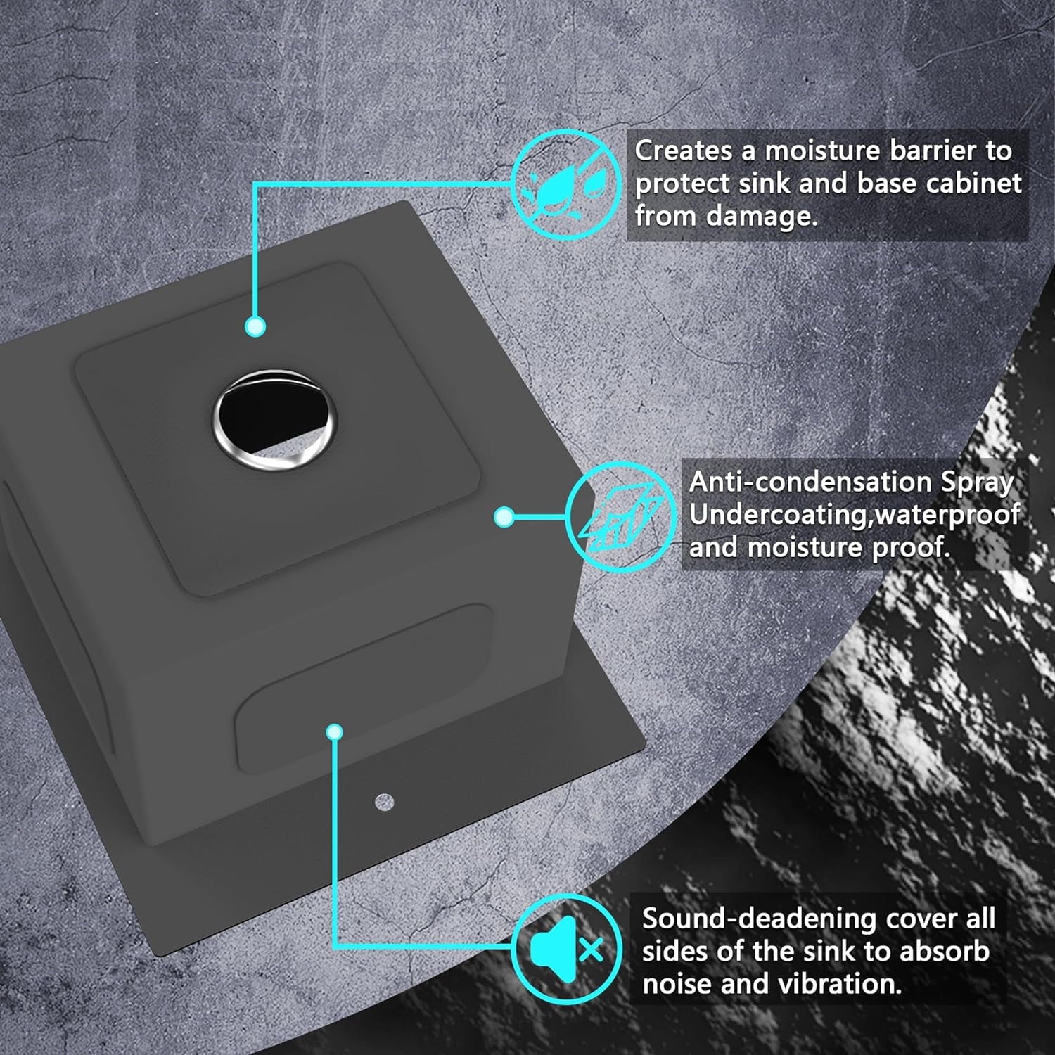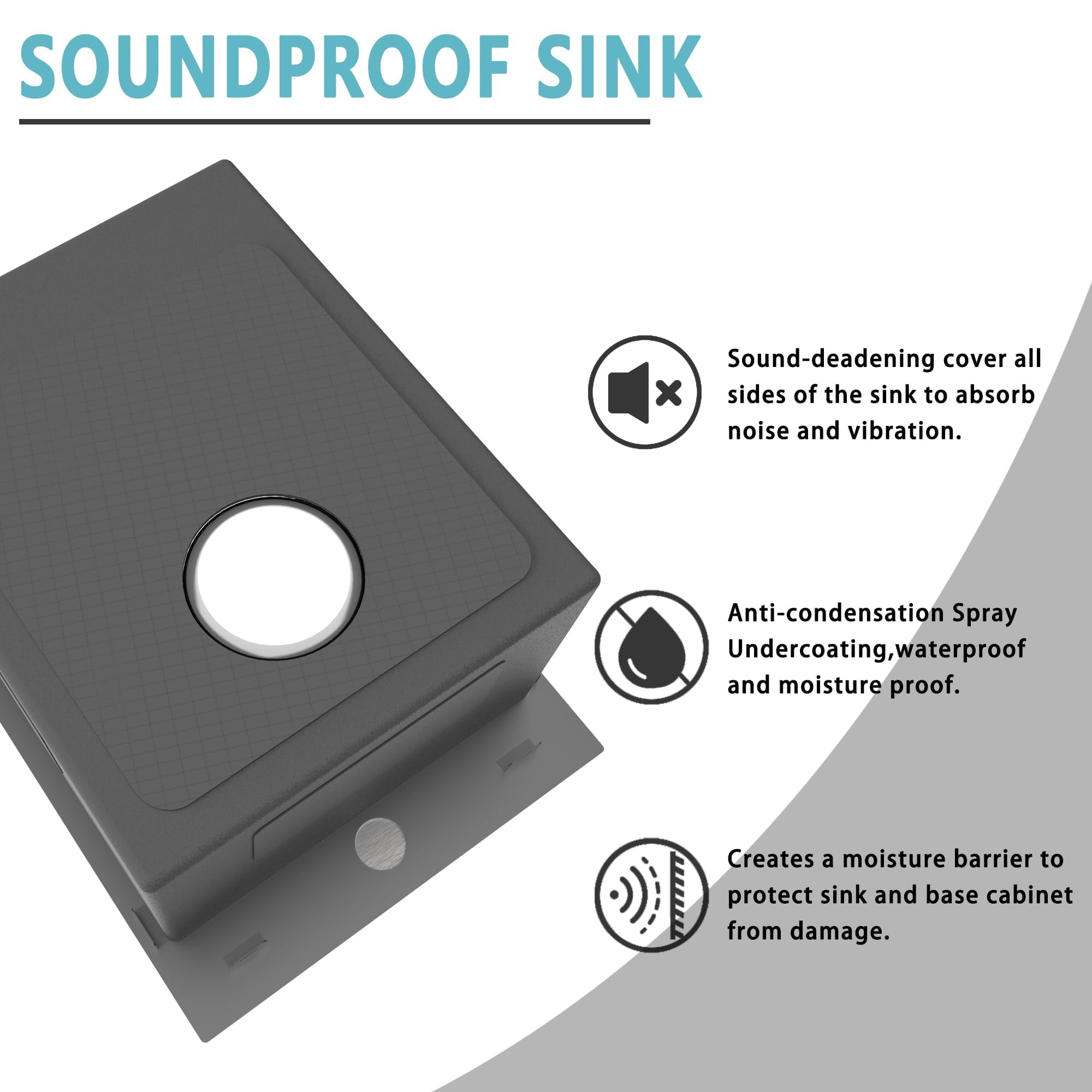 SOUND BARRIER TECHNOLOGY: Drop in Kitchen Sink adds 3 Sound-proof Pads to the bottom of the sink to reduce the sound of running water. Undercoating condensation layer minimizes noise and reduces condensation to protect your cabinets and allow you to enjoy quiet cooking and washing time.
