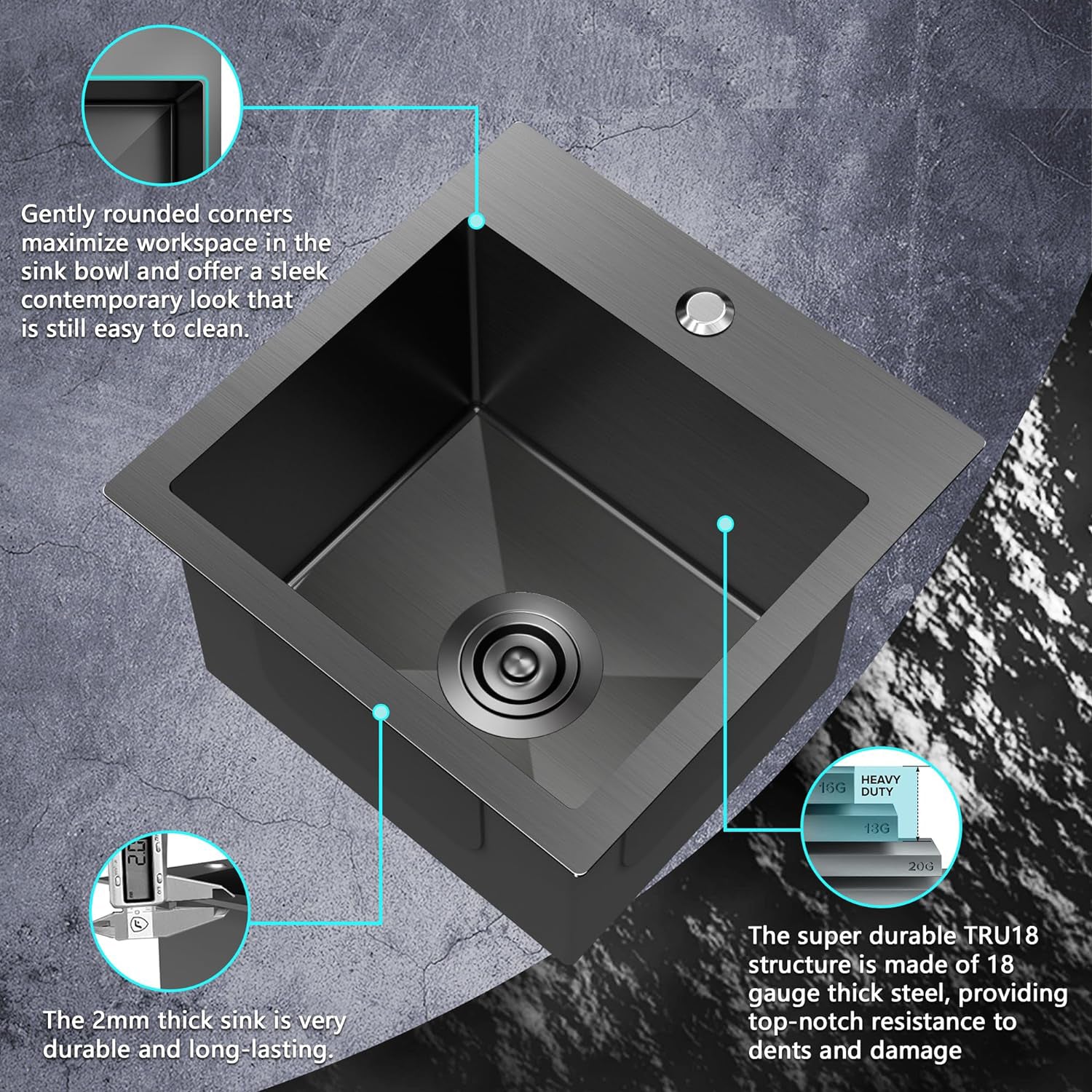 - PREMIUM MATERIAL: This Single Bowl Kitchen Sink is made of high quality, ultra-thick 18 gauge T304 stainless steel with a brushed black NANO finish to ensure scratch and stain resistance, sturdy and durable, will not fade over time. Featuring a commercial grade satin finish that is dent and scratch resistant, durable while being easy to clean and maintain beauty.