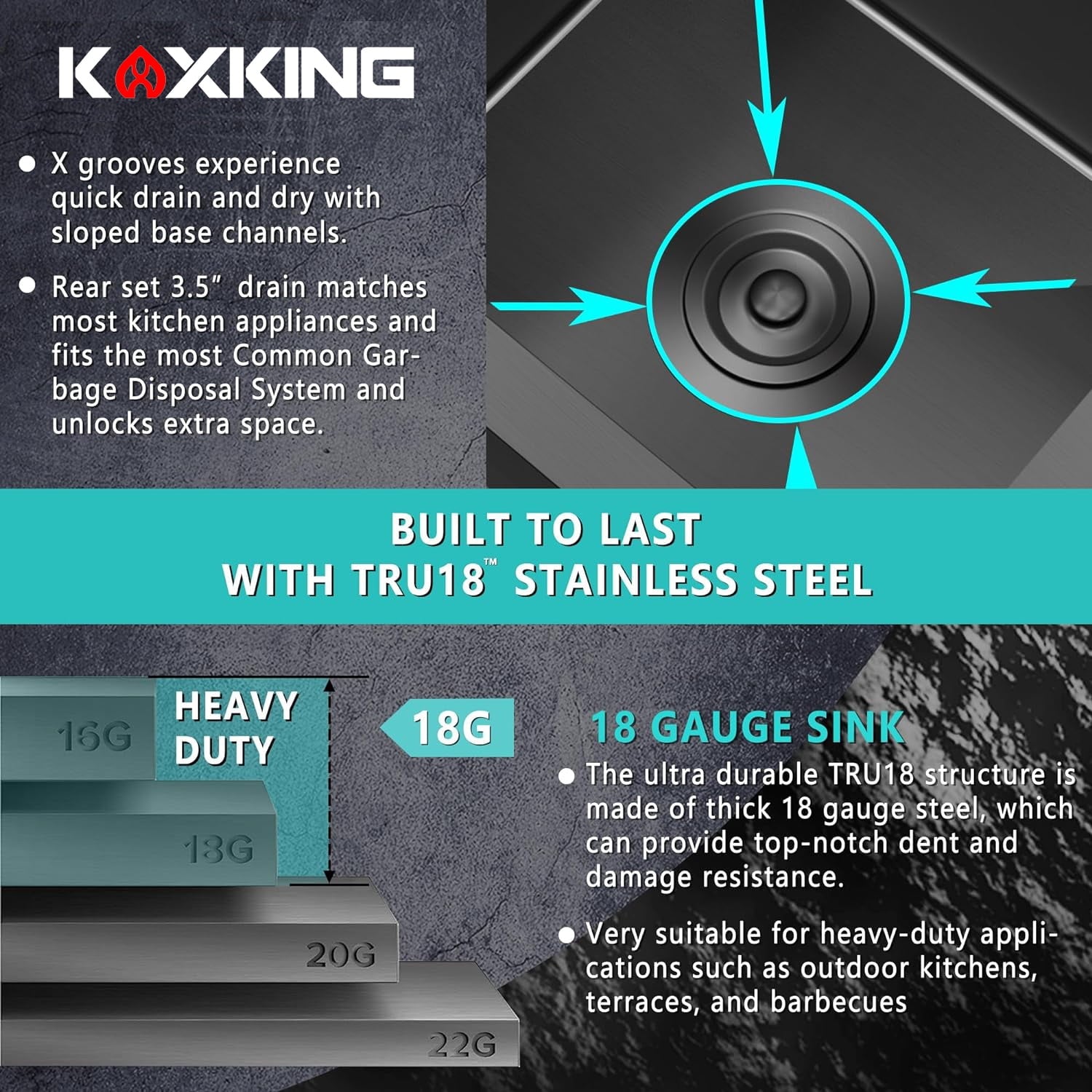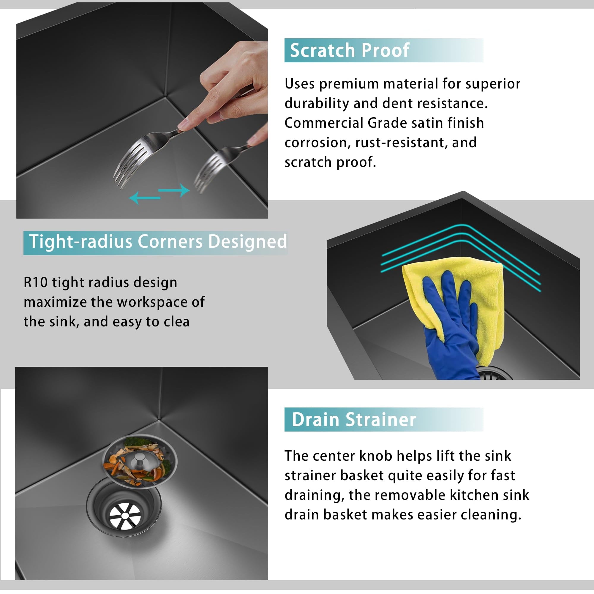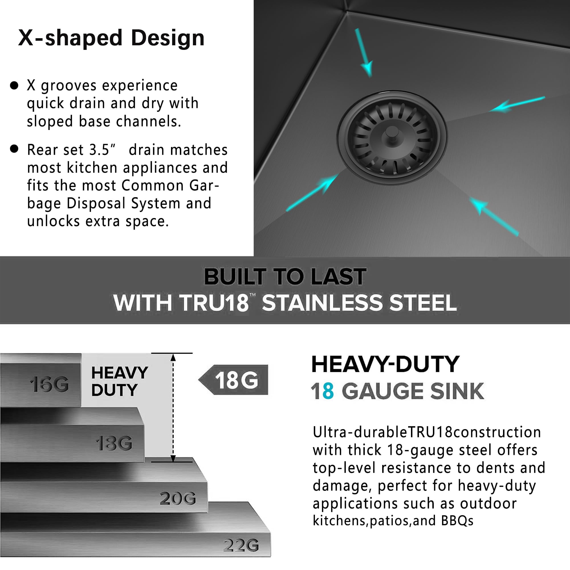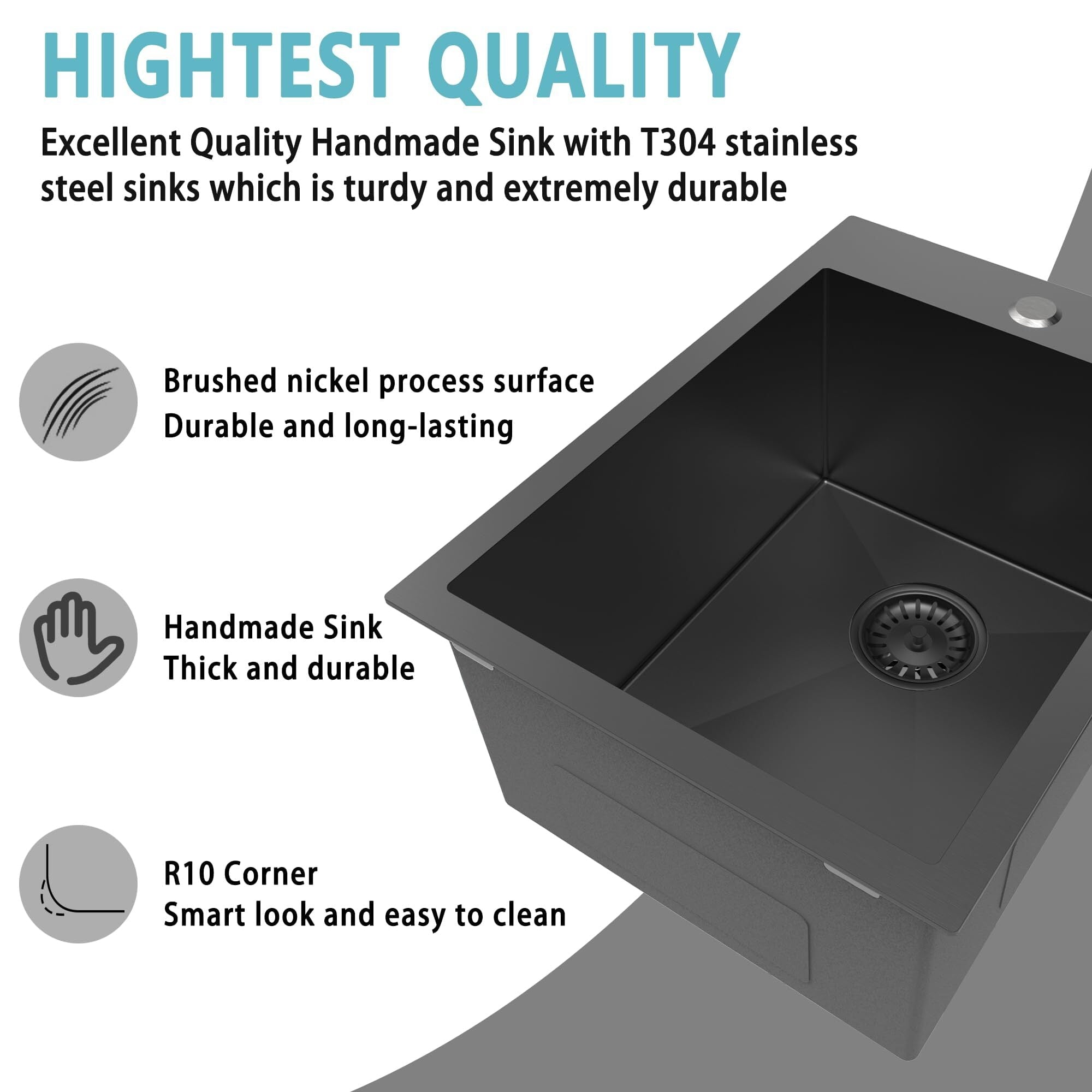 PREMIUM MATERIAL: This Single Bowl Kitchen Sink is made of high quality, ultra-thick 18 gauge T304 stainless steel with a brushed black NANO finish to ensure scratch and stain resistance, sturdy and durable, will not fade over time. Featuring a commercial grade satin finish that is dent and scratch resistant, durable while being easy to clean and maintain beauty.