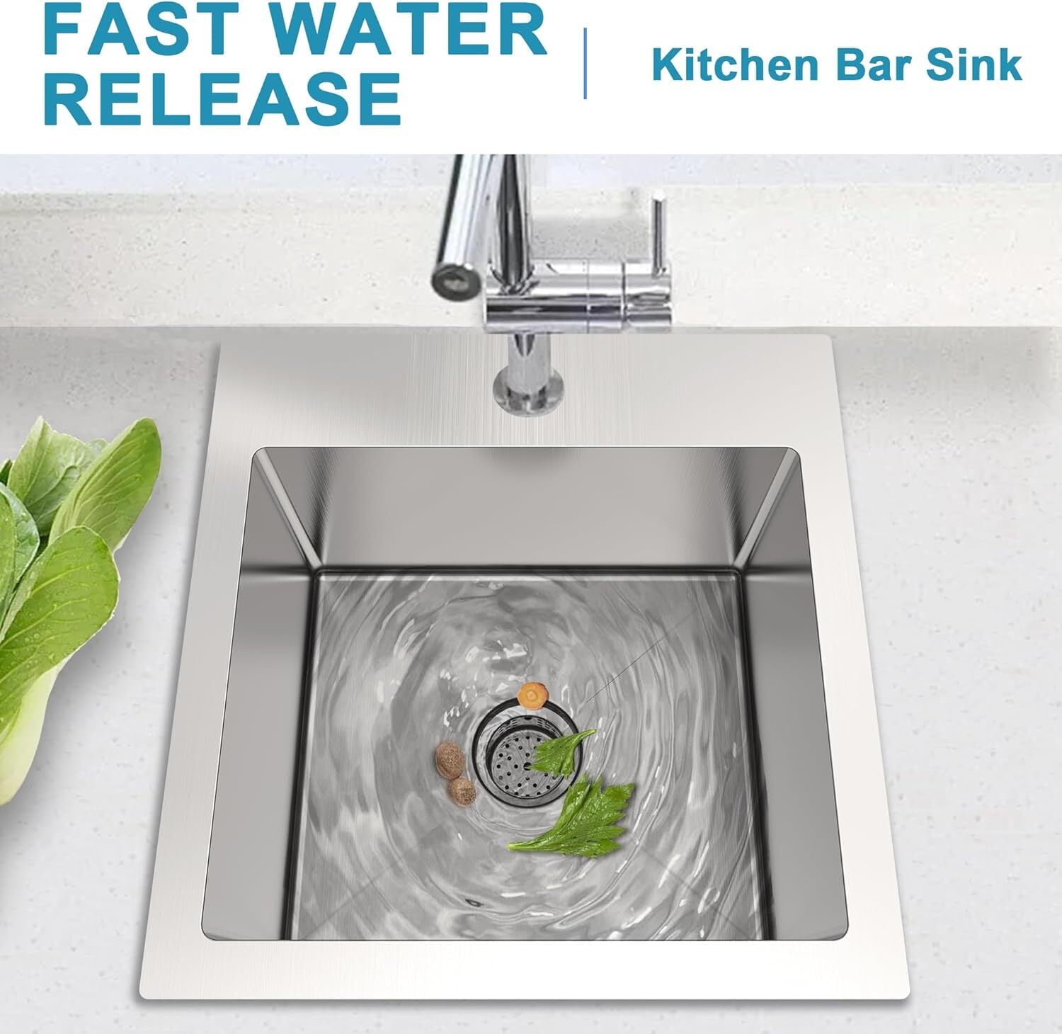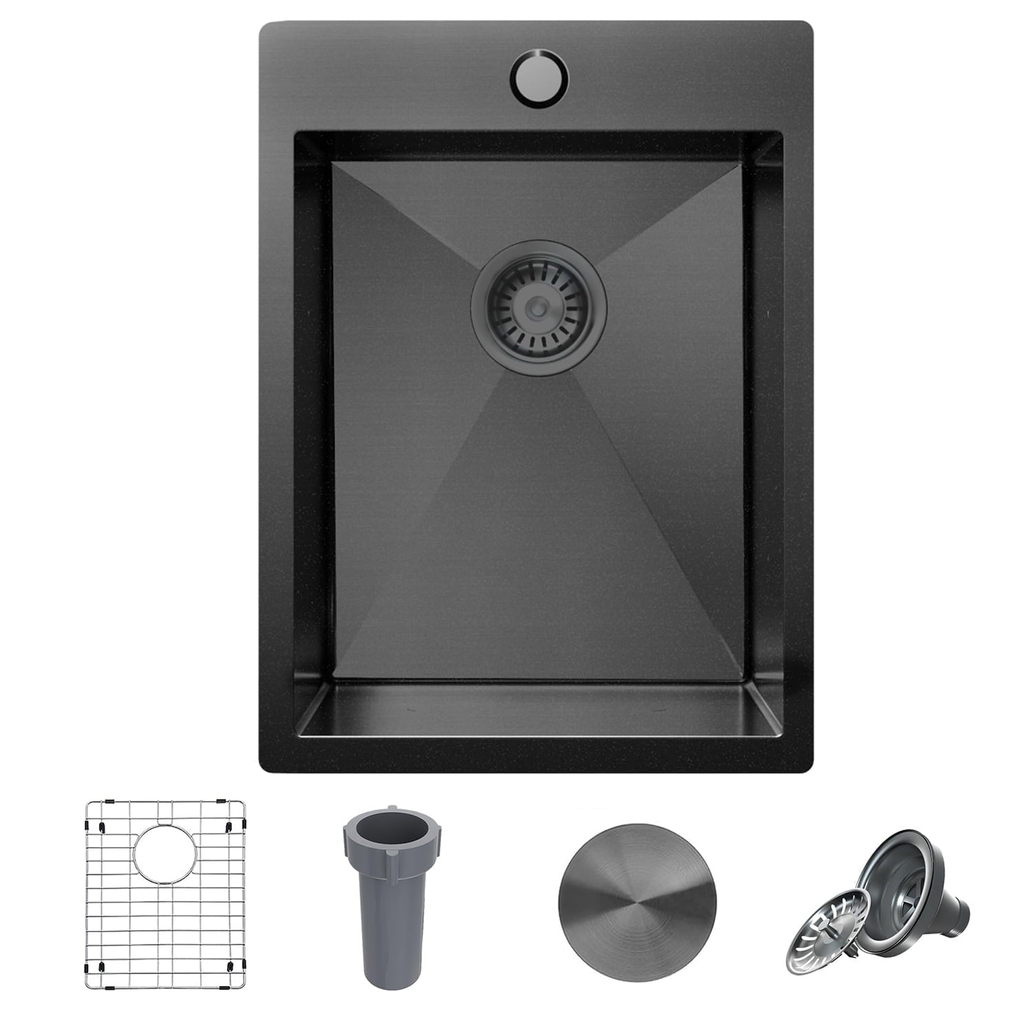 - X-SHAPED DESIGN: The 15×15 inch black bar sink is designed with slopped bottom and X-shaped drain grooves that ensure draining water quickly and prevent water pooling,while maintaining an elegant appearance.