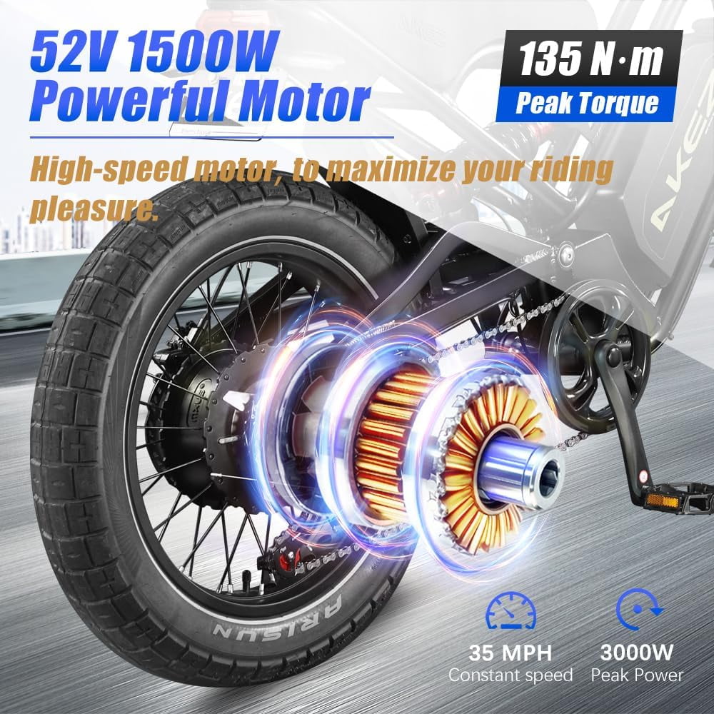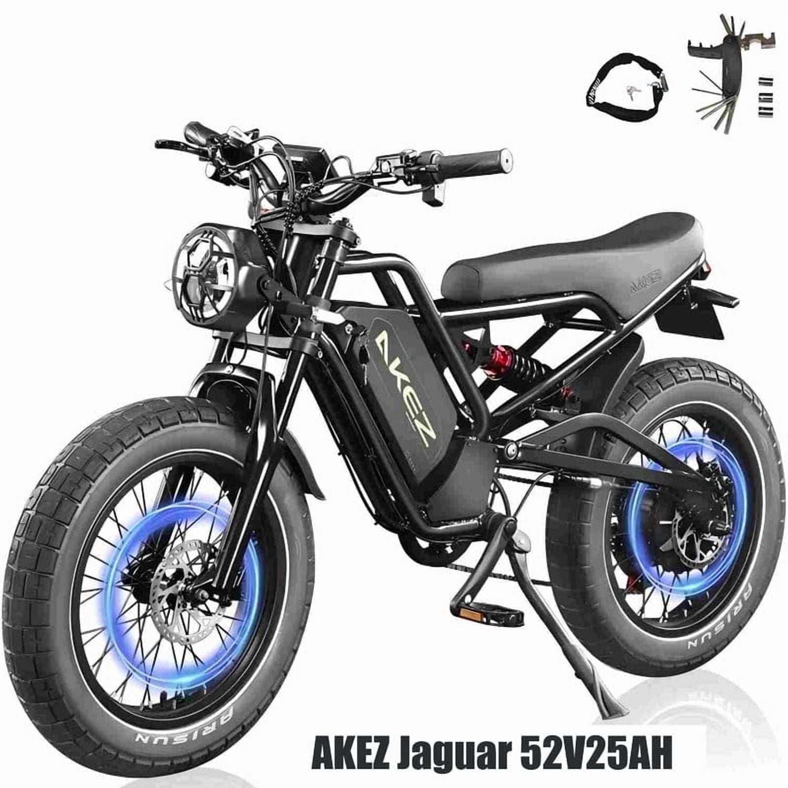 The AKEZ Jaguar electric bike is designed for adults seeking both power and comfort in every ride. Built with a strong aluminum frame and dual suspension, this 1500W fat tire ebike delivers stability and durability or rugged trails. The removable 48V18Ah battery provides long-lasting range, while the Shimano 7-speed gear system ensures smooth shifting across different terrains.