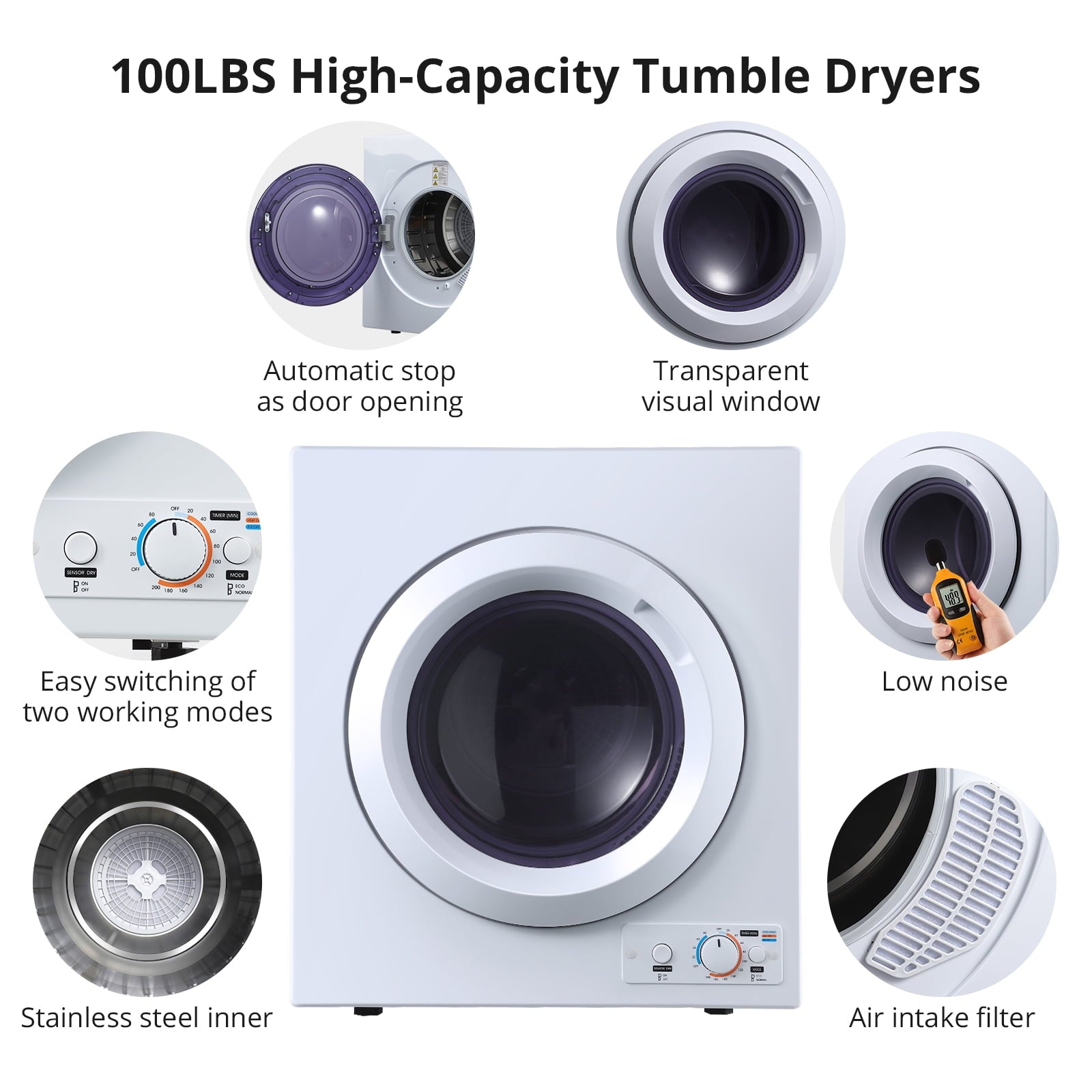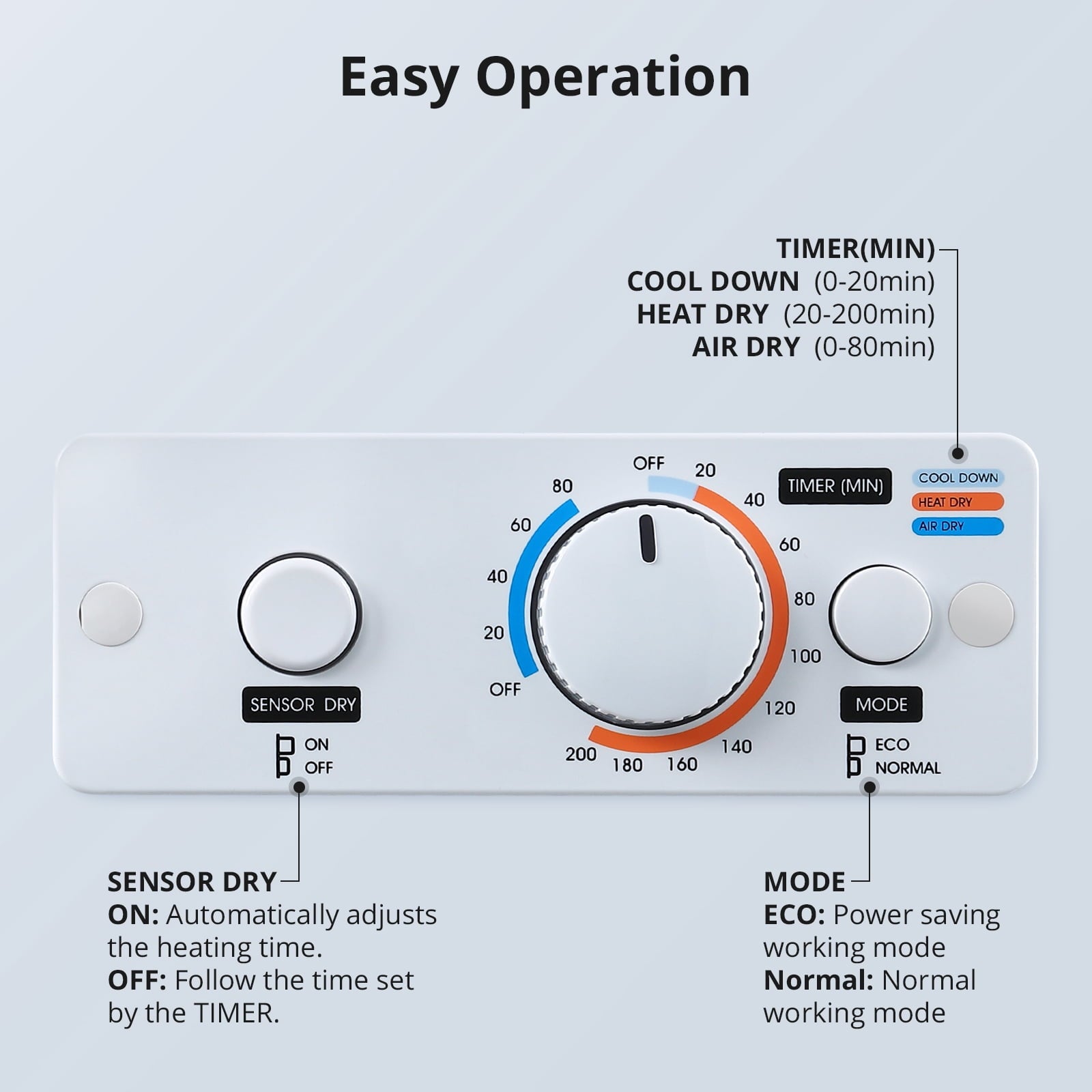 - Powerful Performance: This electric dryer is featured with 1500W power and large capacity, drying clothes in 200 minutes for ensuring your clothes to be completely dried; no worry for clothes drying even though it lasts rainy.