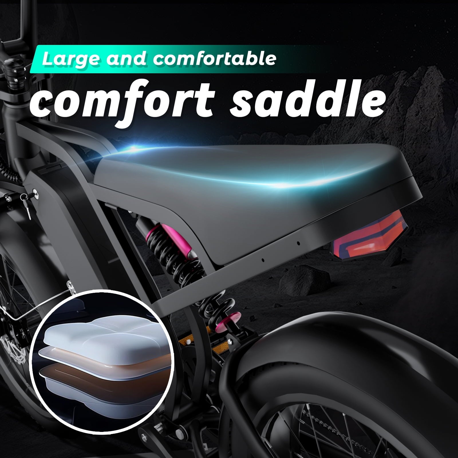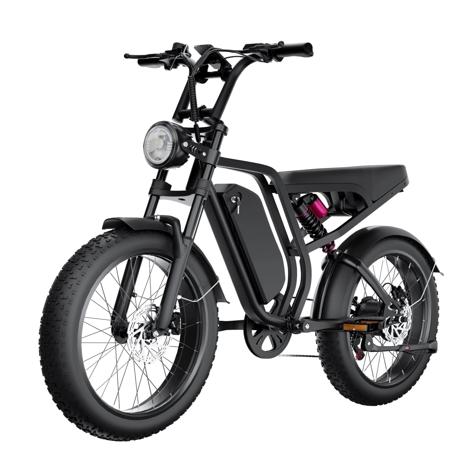 • Full Suspension Electric Bikes for Adults: Equipped with dual-crown front suspension fork and rear shock, which greatly reduces bumps during riding. 20 x 4.0” fat tires also provide great grip and excellent shock absorption, and effectively increase riding stability. This full suspension ebike offers the most comfortable riding in all terrain such as snow, beach, mountain, gravel roads, helps you conquer most road conditions