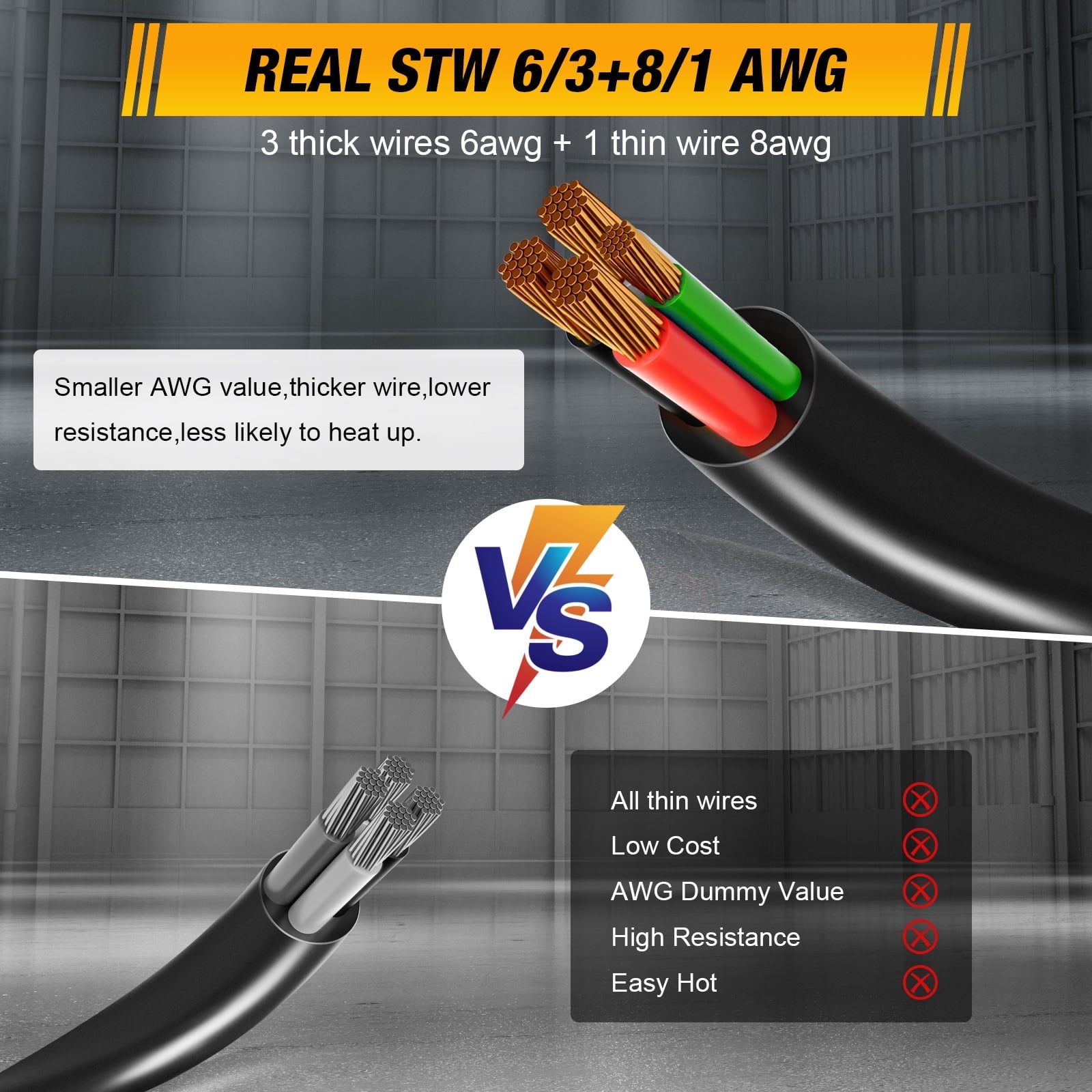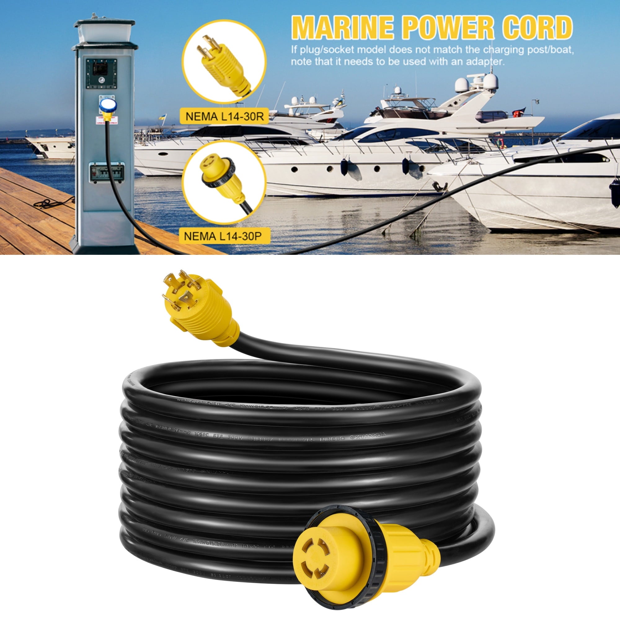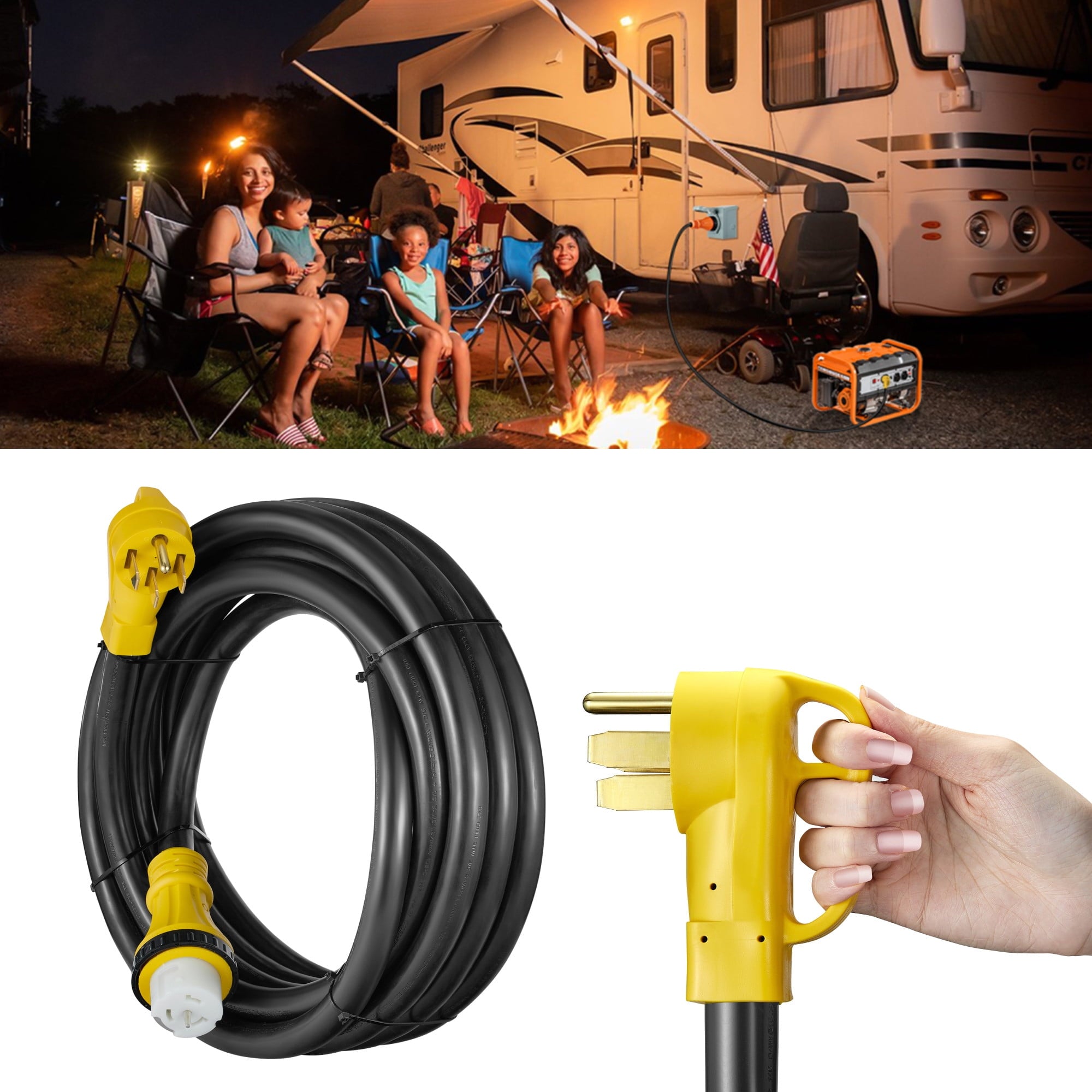 🚍🔌➤【30 Amp RV Extension Cord】: RV cord length is 15FT, uses four 10AWG wires, SJTW power cord outer skin thickened heavy-duty pvc line, has certain flame retardant anti-aging wear-resistant and not deformed; the internal use of oxygen-free pure copper copper wire, four 10AWG thicker diameter thickened and held, low resistance conductivity is good, the voltage is stable and not easy to get hot.