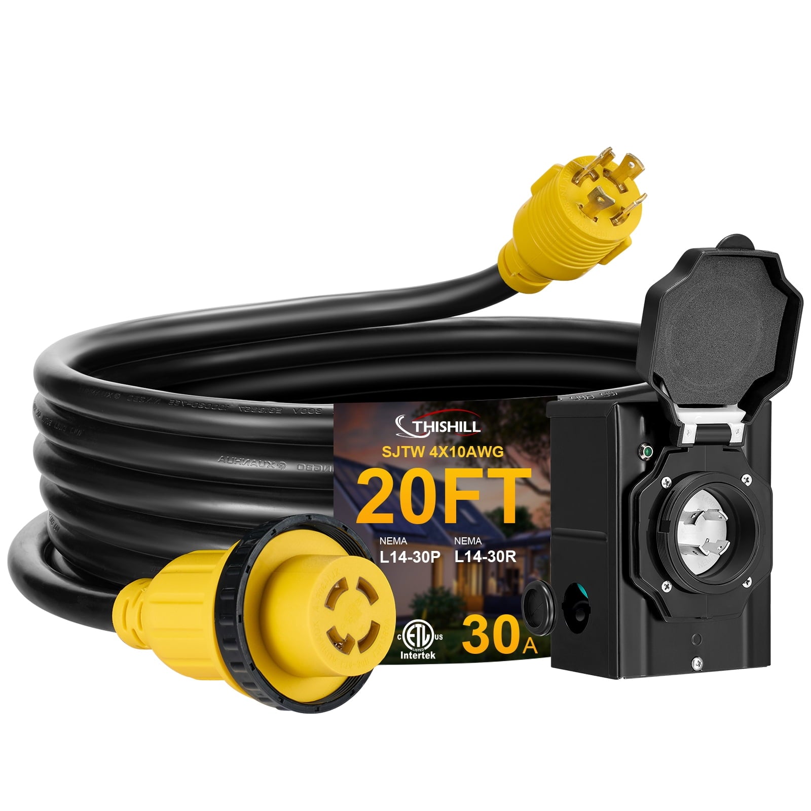 Home Extension Cords 15FT 30 Amp Generator Cord with Inlet Box, RV Extension Cord NEMAL14-30P / L14-30R, Twist Lock Connector, 125V/250V Generator Extension Cord for RV Camper/Electricity for House Generator