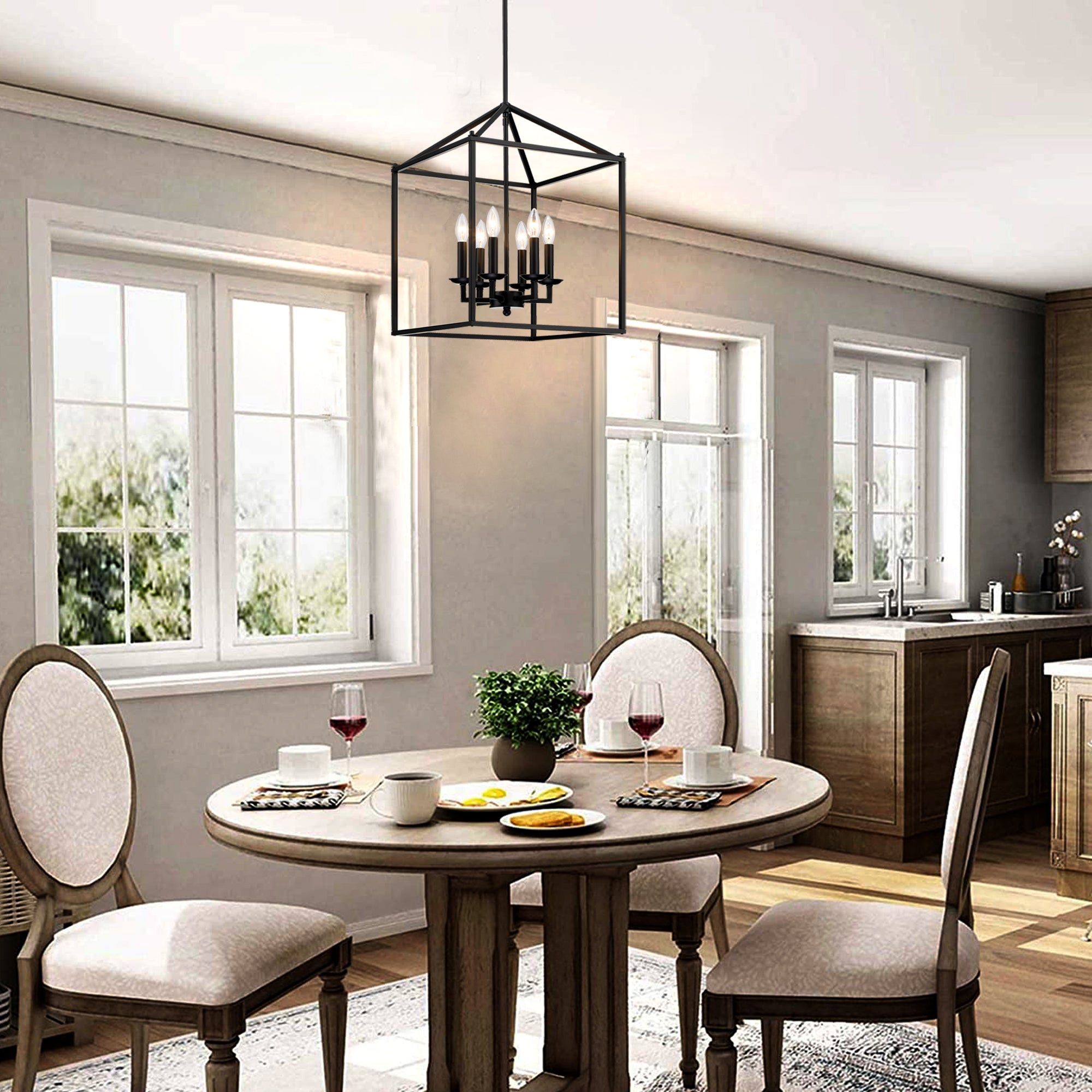 The charming 6-Light modern pendant lighting Illuminates your space in modern style. This kitchen light fixture features an open shaped shade which was fully crafted from metal. An adjustable length of downrod with a matching canopy above to round out the design. Mount this modern black hanging light to warm up your home.