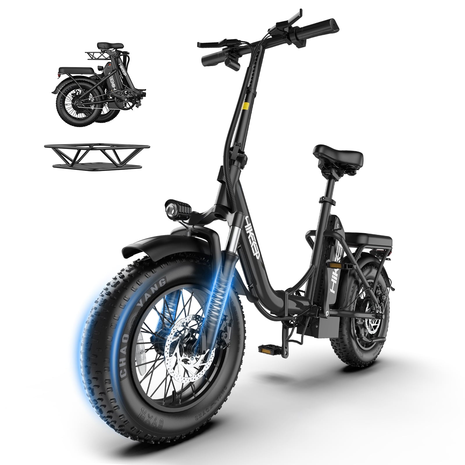 - Tires: 16×4” fat anti-puncture snow/mud-proof tires