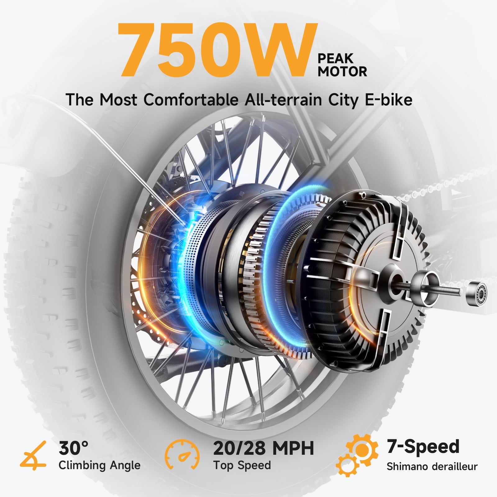 - Motor: 750W brushless motor (1200W peak)