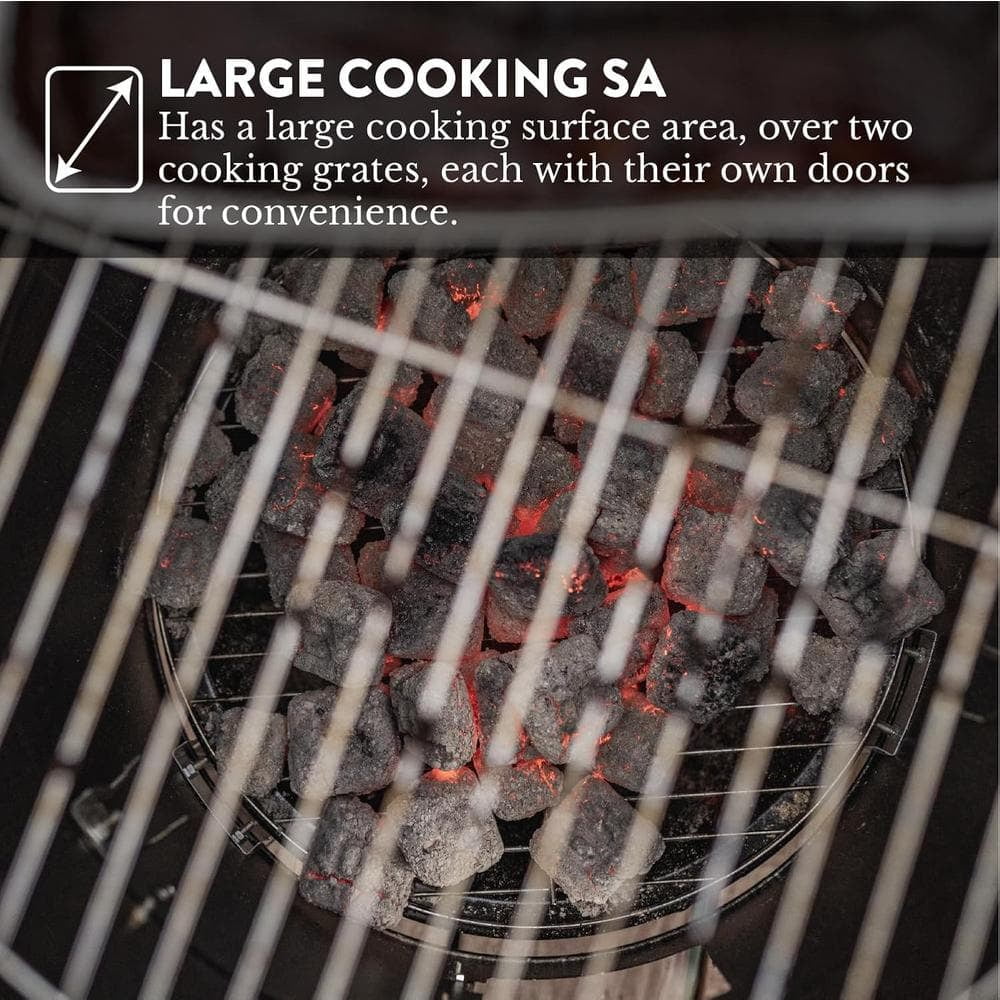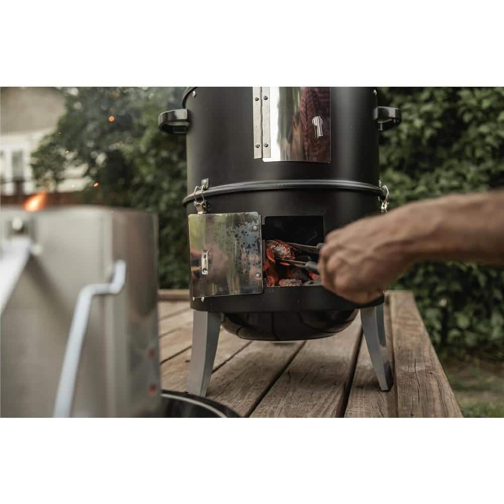Multi-purpose Vertical Smoker with Double Doors and Superior Cooking Surface The Gas One CSM-16 charcoal smoker was designed having in mind the perfect balance between ease of use and durability, allowing you to enjoy delicious, flavorful meat courses with minimal prep time. Featuring a superior steel construction, with a convenient vertical design and 2-layer design for maximizing cooking space, this grill with smoker will become your no. 1 ally for those fun outdoor BBQ experiences, as well as for camping trips, nature exploring, picnics and more Not entirely convinced. Here are some of the amazing features of this grill smoker: 1. Dimensions: 16 in. diameter, 2. Material: Steel, 3. Sturdy and reliable, 4. Rustproof design, 5. 2-tier for superior cooking surface, 6. Double door access, 7. Built-in thermometer for accurate temperature reading, 8. Superior temperature control with adjustable air supply, 9. Heat resistant handles, 10. Suitable as smoker or grill, 11. Easy to assemble and use, 12. Stable locking system. Enjoy mouth-watering, tender meats with this premium charcoal smoker grill.